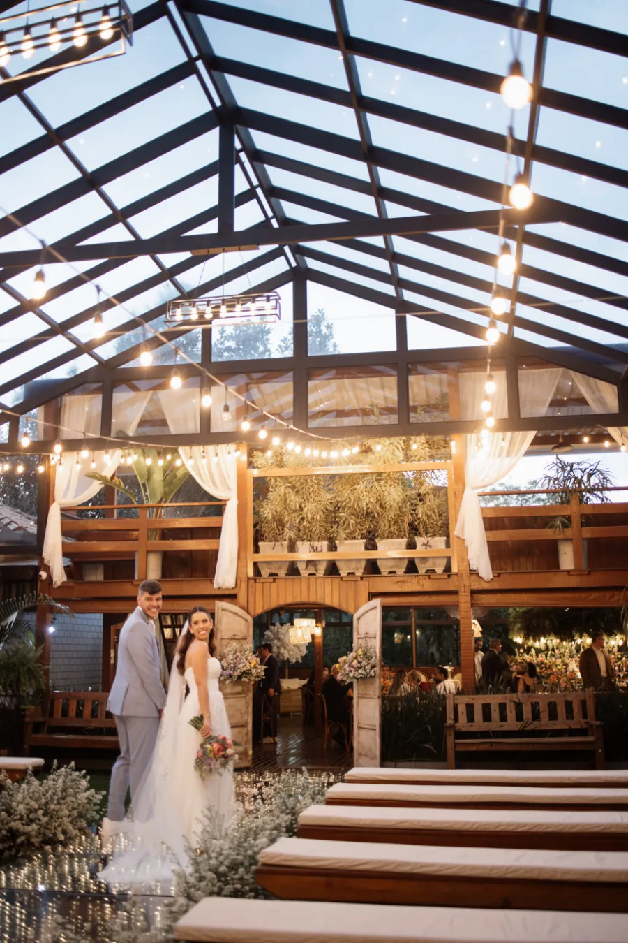 Por isso, elementos como madeira, flores naturais, tecidos leves, luzes quentes e espaços integrados à natureza criam um cenário perfeito.