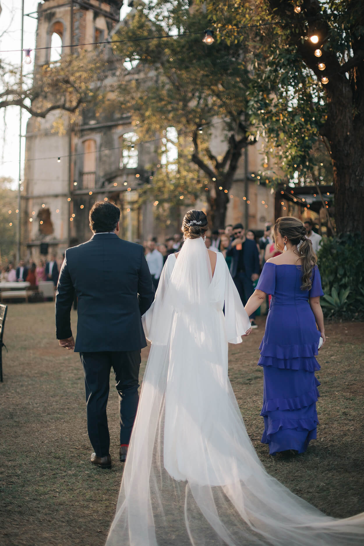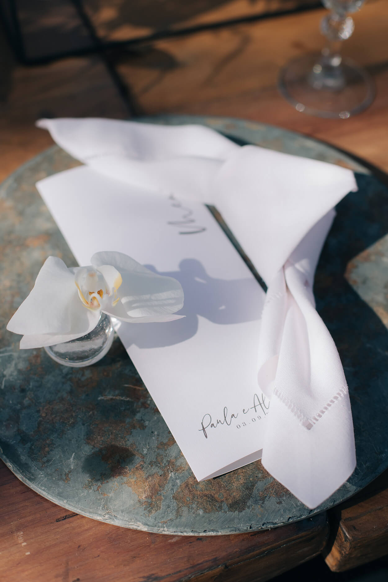 “Também ressignificamos as nossas alianças, que eram representadas por três elos entrelaçados. Em que cada elo representava: a família do Alexandre, a família da Paula e a nossa família que estávamos construindo juntos a partir daquele momento. Com isso, fizemos uma homenagem para as nossas mães, em que cada uma delas ganhou um anel com a representação da sua família e também da nossa se unindo.”