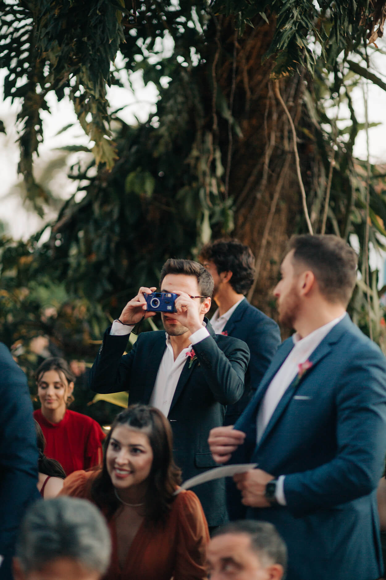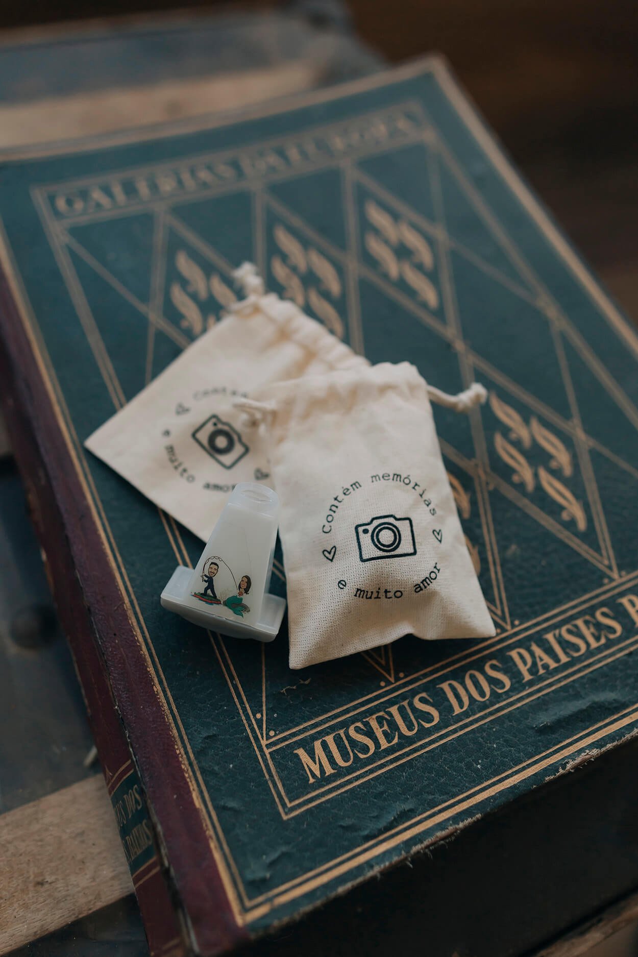 “Disponibilizamos algumas câmeras analógicas para que os convidados pudessem resgatar as memórias daqueles momentos em que vivíamos intensamente e não ficávamos conectados aos celulares. Com isso, tivemos registros únicos e especiais! Isso fez tanto sucesso que agora levamos em todos os casamentos dos nossos amigos.”