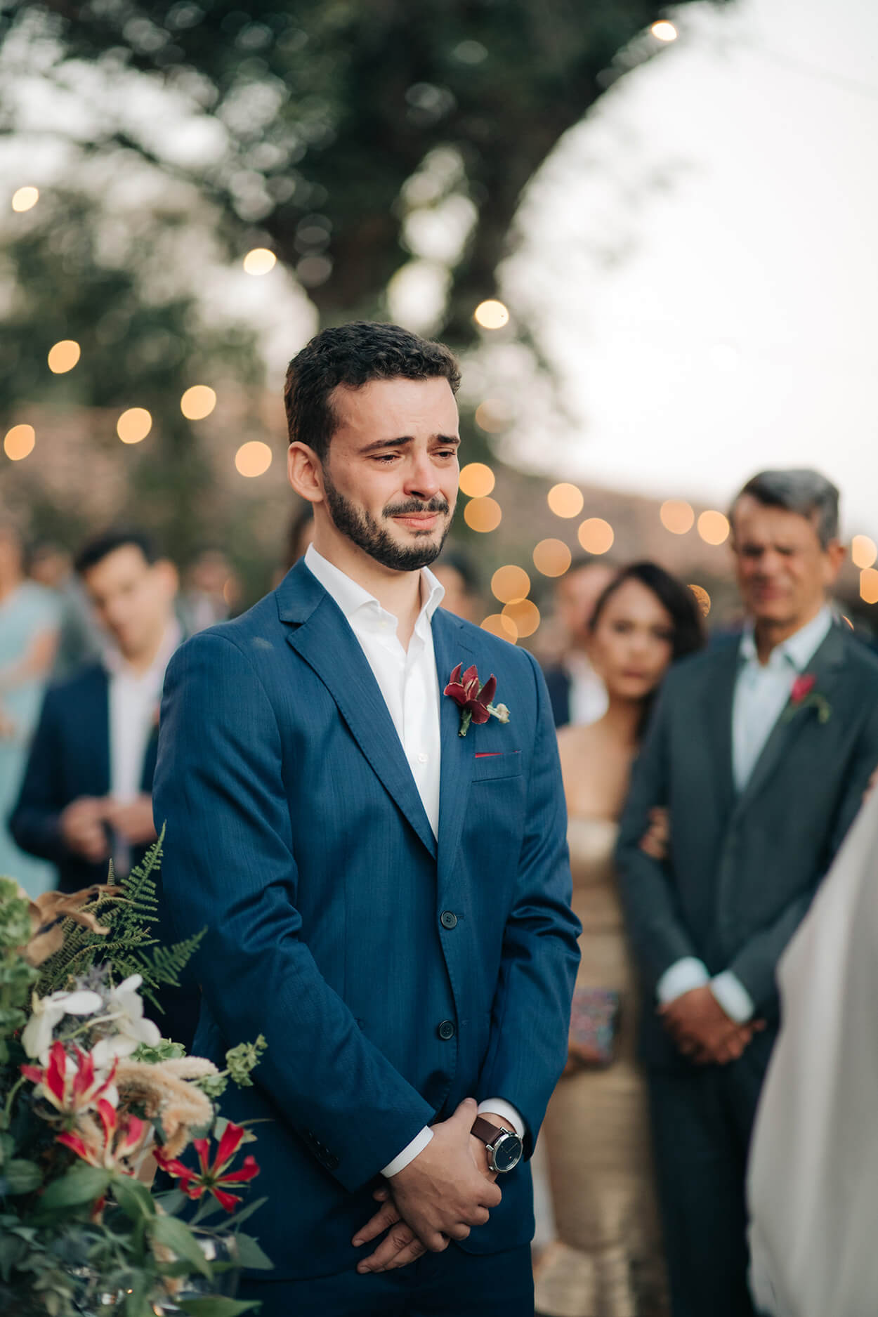 A Paula ficou muito tocada quando viu Alexandre aos prantos de tanta emoção com a sua entrada, ficou tão desnorteada que quase o beijou naquele momento! O momento mais emocionante para o noivo foi quando ela entrou tocando um sino e durante os votos, quando deixou o papel de lado e falou o que veio no seu coração.