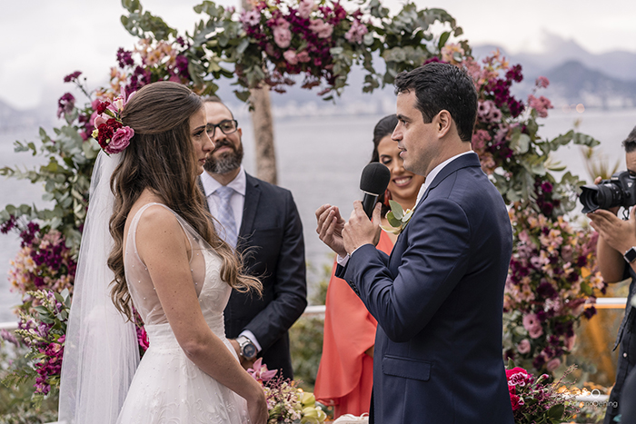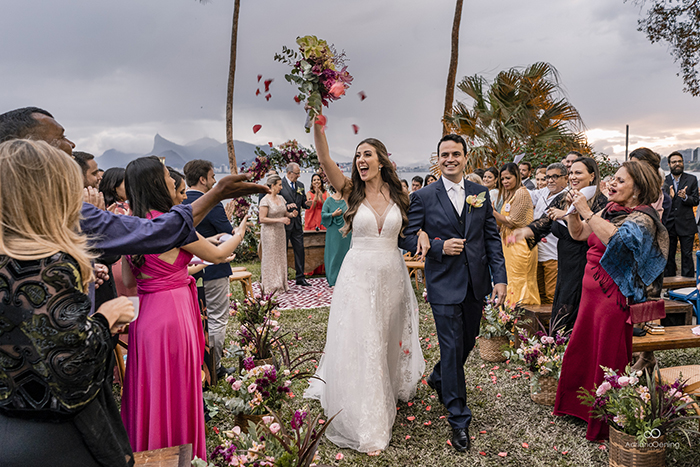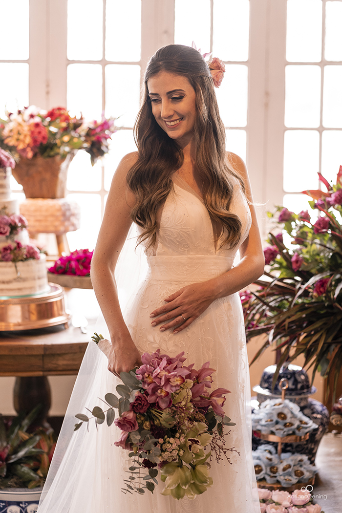 A decoração foi lindíssima, com toques rústicos, coloridos e bem alegres. Escolheram desse jeito por refletir seu estilo de vida. “É essencial contratar um profissional que te ajude a organizar esse dia. A Samantha Maia e a equipe dela foram de extrema importância para que tudo saísse tão bem, porque imprevistos acontecem e elas conduziram com maestria.”
