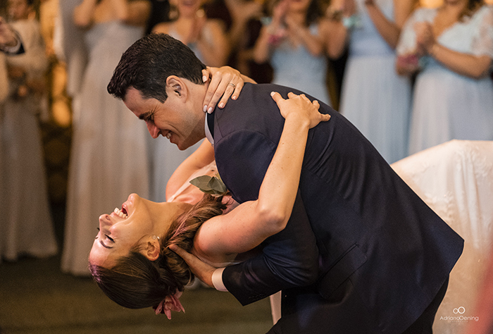 Casamento é muito caro e muito especial para você convidar quem pouco tem contato, sejam seletivos nos convites e não tentem agradar todos. Façam o casamento que vocês sonham e curtam até o último minuto. Os noivos é quem animam a festa. Divirtam-se muito, é um dia único! Descansem no dia anterior. Se alimentem e bebam água na festa (é fácil esquecer), nós tínhamos um garçom que dava atenção especialmente a nós.”