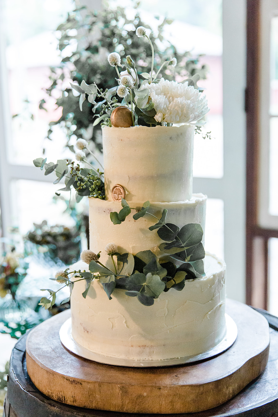 A decoração seguiu uma paleta de cores em tons de branco e verde, com alguns elementos amadeirados e muita, muita folhagem! Tudo isso para dar o toque rústico que a Bárbara tanto queria.