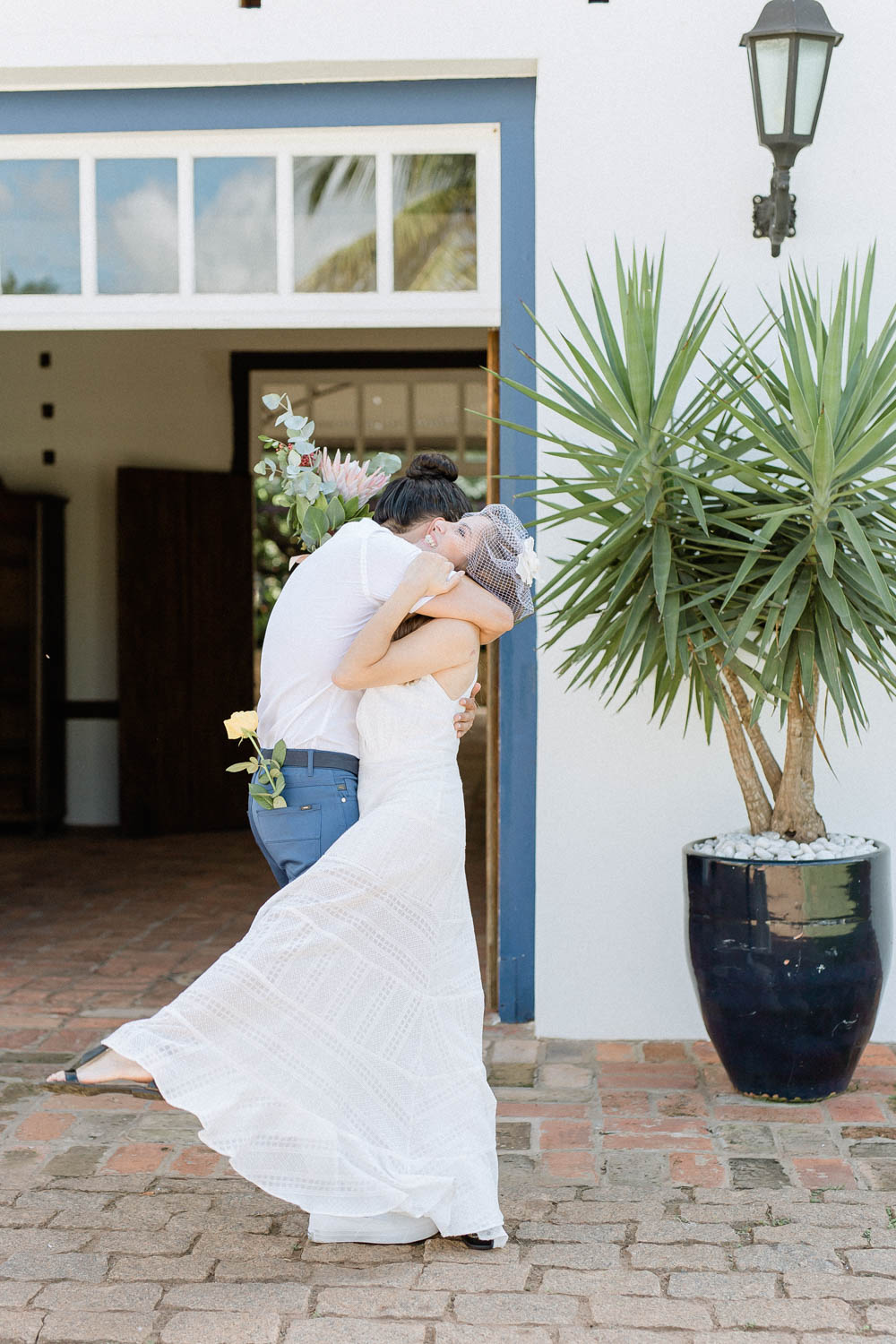 É um momento privado e íntimo entre o casal (e o fotógrafo e videomaker) onde eles se veem pela primeira vez vestidos e prontos para dizer SIM. Dessa maneira, o first look é uma chance dos noivos estarem juntos, de se verem vestidos, de deixar as emoções aflorarem, de chorar, de rir, de beijar e abraçar muito e de antecipar as celebrações desse dia tão único.