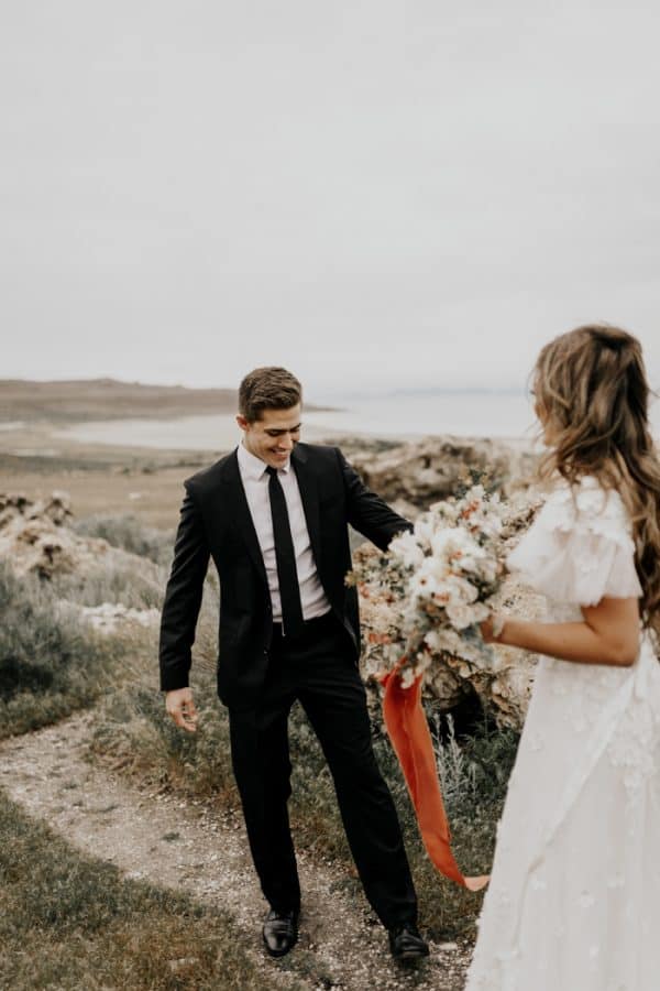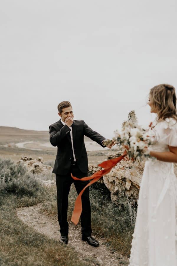 Como não existem regras, o first look não precisa acontecer necessariamente no mesmo espaço da cerimônia. Por exemplo, a Carolina e o Felipe escolheram um belo canyon que ficava a 40 minutos de onde seria o casamento, onde eles costumavam assistir ao pôr do sol e sonhar com o futuro. Eles também queriam declarar seus votos sem o olhar público, pois são muito tímidos.