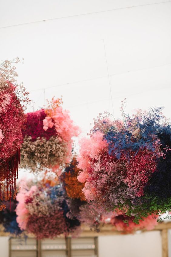 Ainda, as flores e folhagens começaram a ser pintadas com spray colorido para dar um efeito ainda mais exuberante nas decorações de casamento.