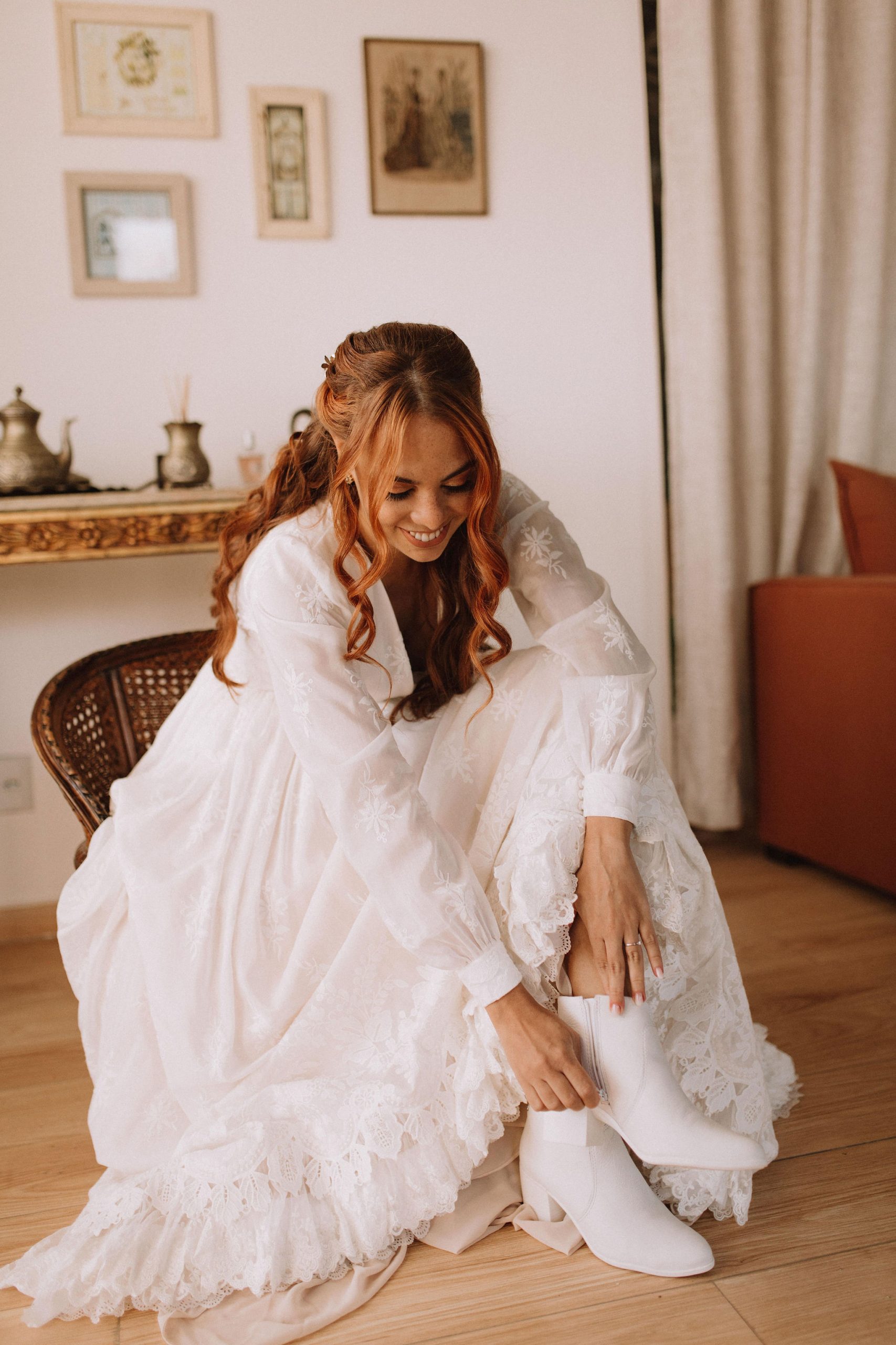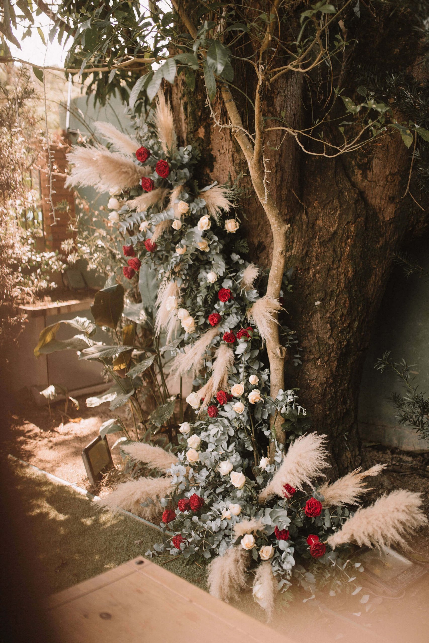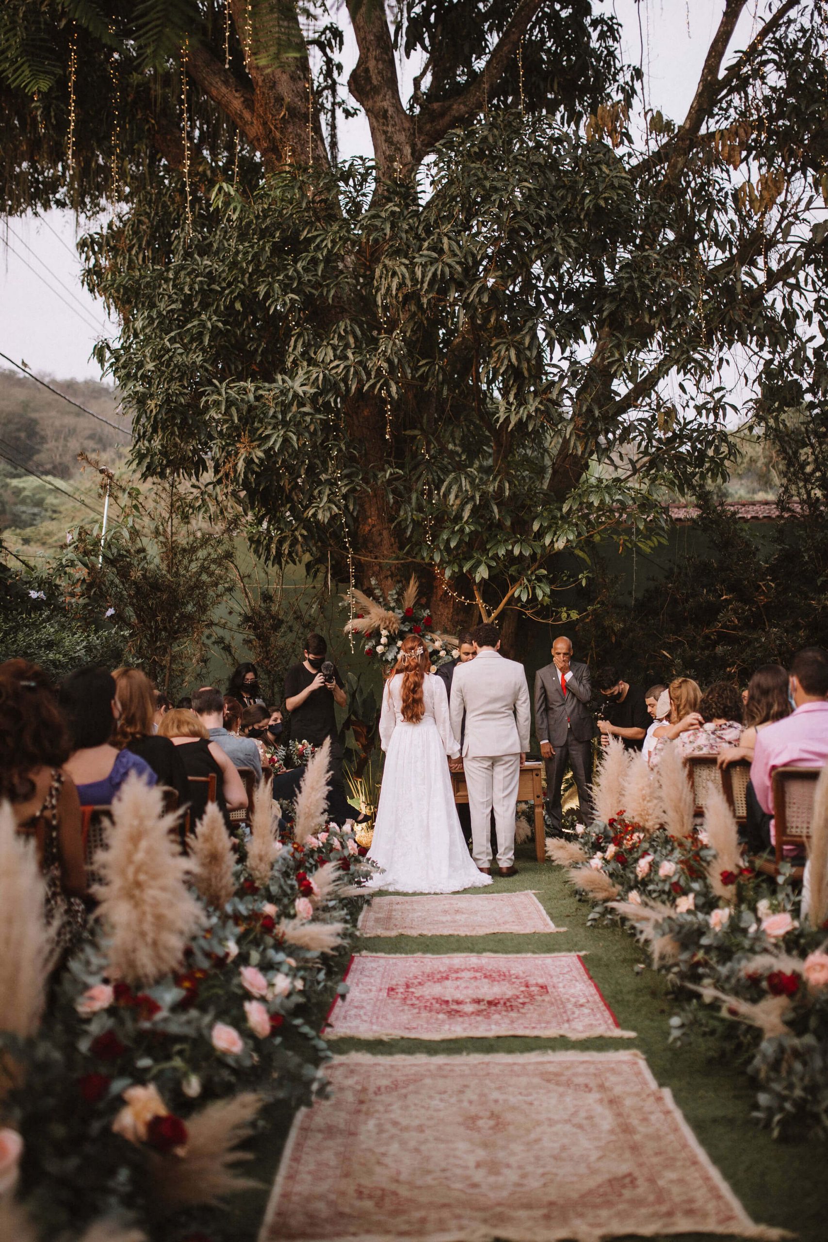 Casamento folk com cerimônia ao ar livre em tarde radiante