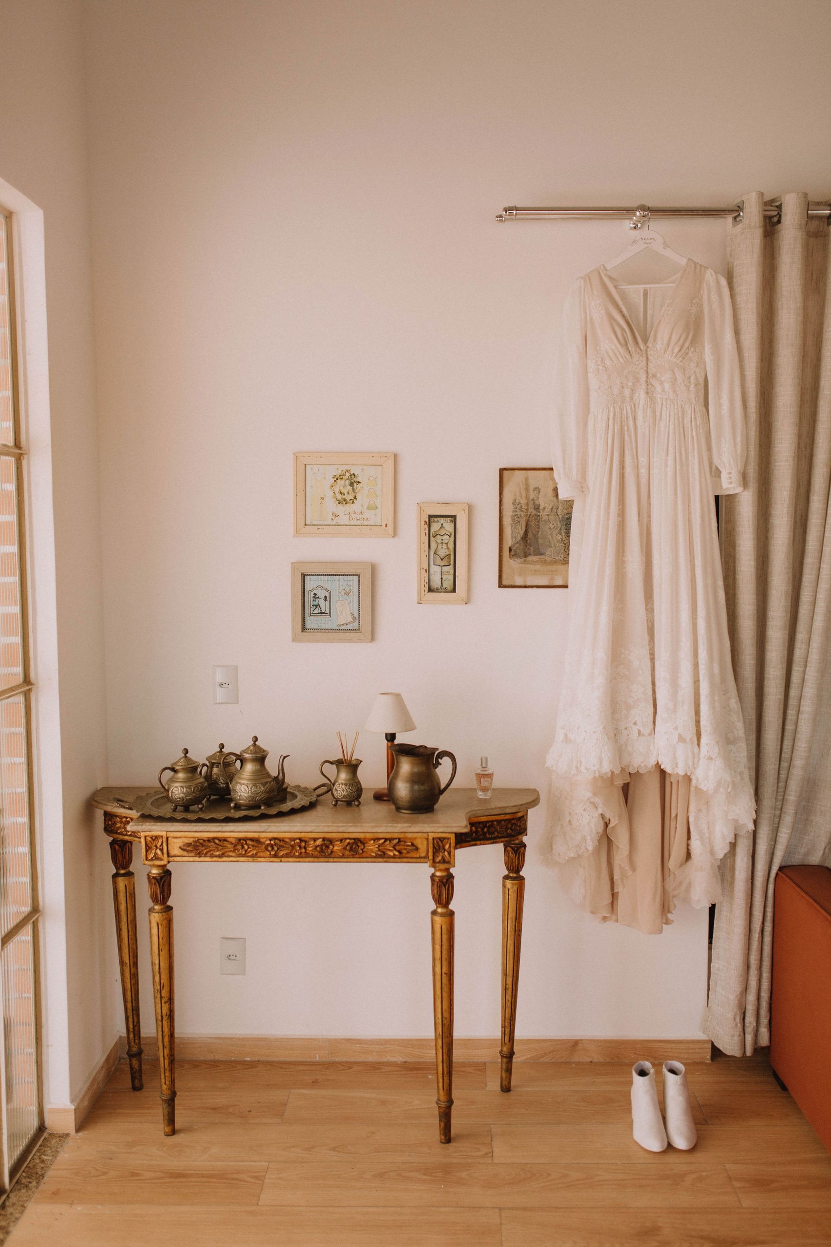 A Larissa aproveitou o clima maravilhoso desse dia para realizar um first look com as madrinhas, inclusive com uma que mora fora do país, por vídeo chamada.