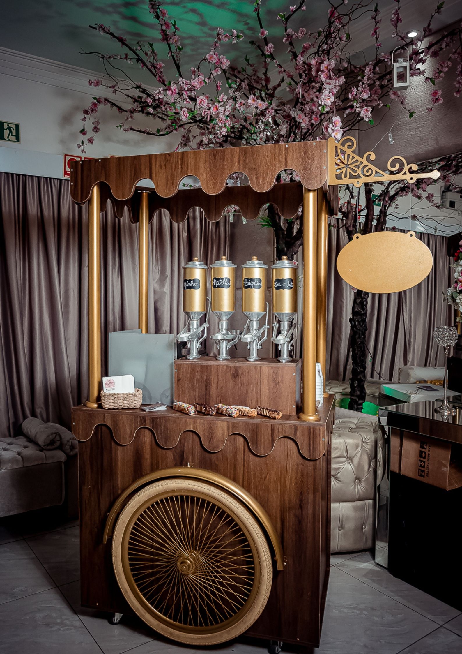 Os lindos carrinhos de churros possuem design diferenciado e estão disponíveis nas cores clean, black, rústico e verde oliva para compor a sua decoração com muito charme.