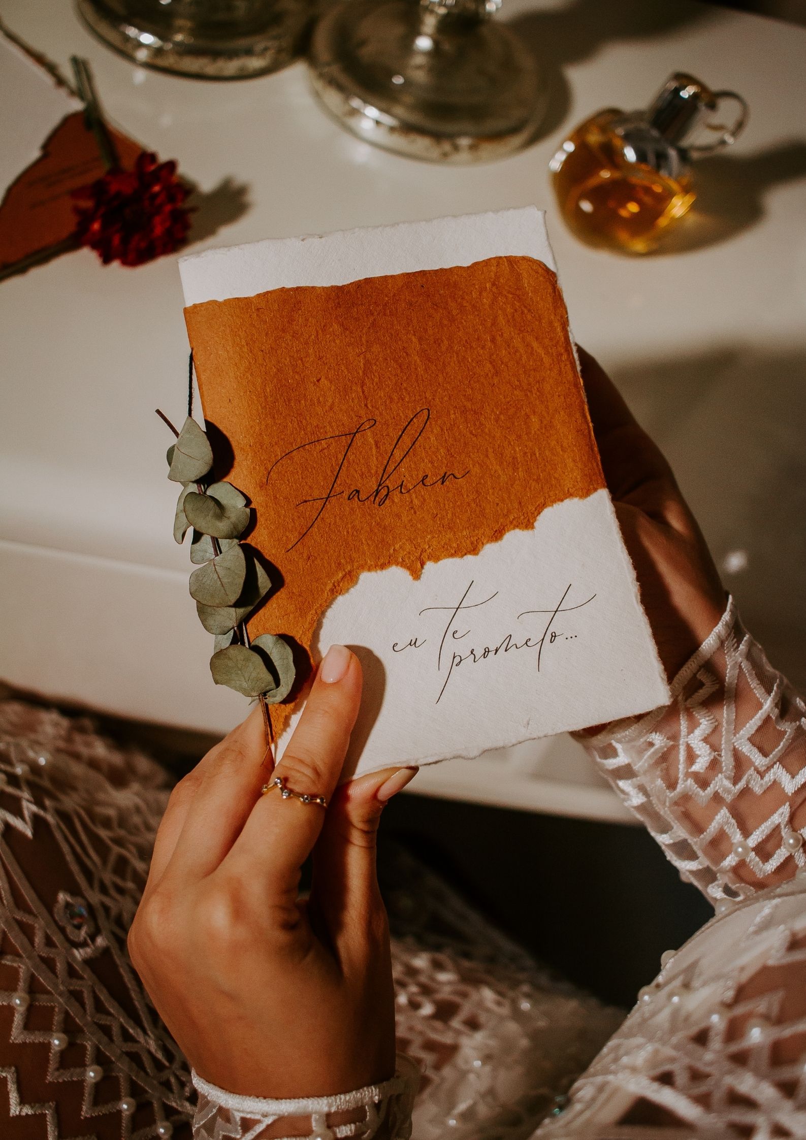 O Feito Craft - Estúdio Criativo pode te ajudar! Eles vão entender sobre sua história e traduzir na identidade do casamento exatamente a imagem que querem passar ao convidado, de modo que quem recebe reconhece que é seu mesmo sem ter lido seu nome!