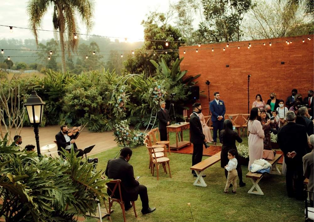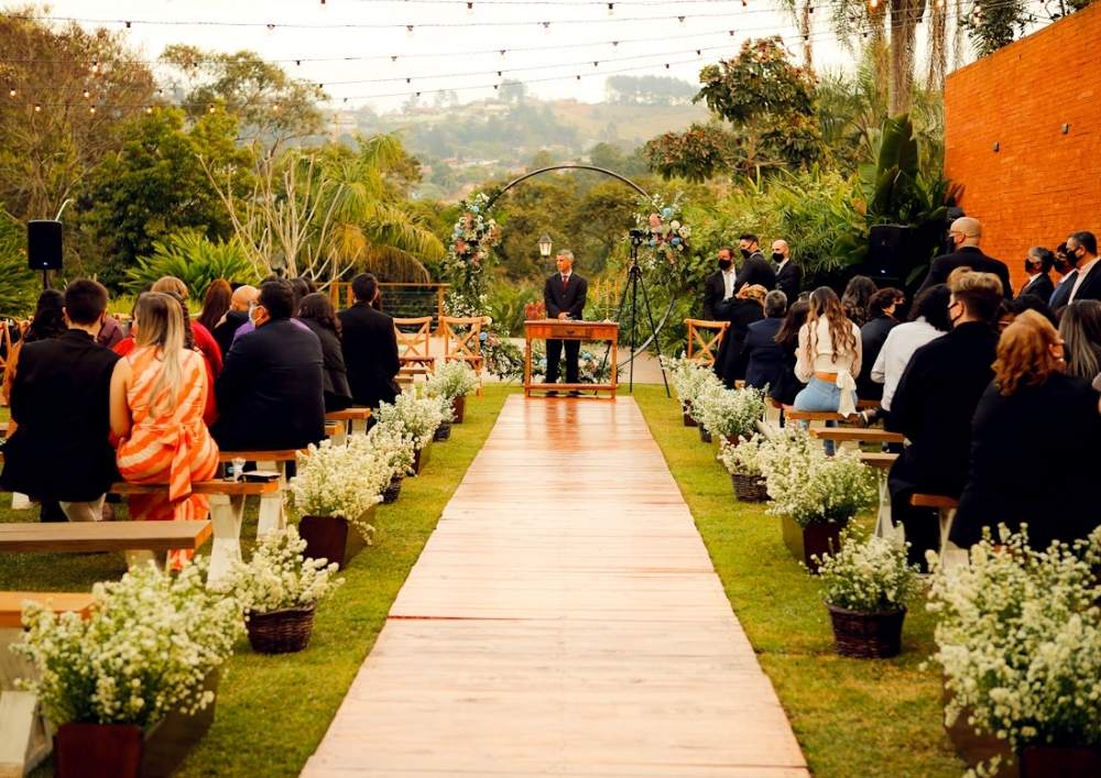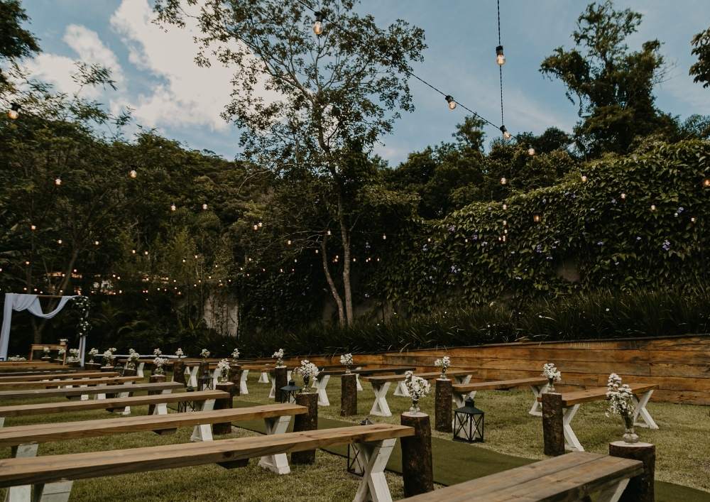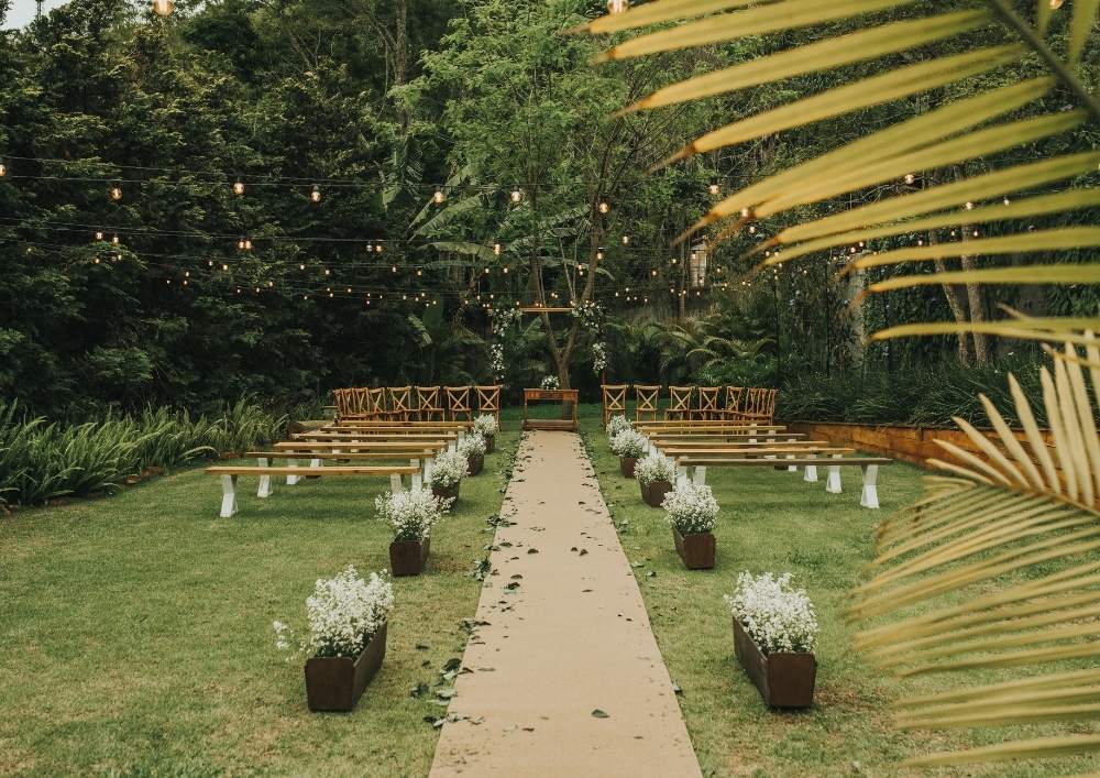 Casamento no campo com várias opções de montagens para o cerimonial em meio a lindos jardins com natureza exuberante.