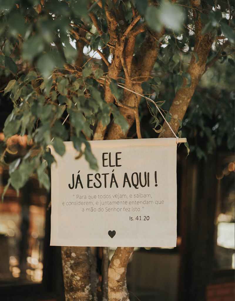 Frases bíblicas para casamento na decoração, seja em tecidos na mobília ou até mesmo acompanhando os arranjos de flores nas mesas dos convidados, por exemplo, podem dar um toque especial à sua maneira de expressar a fé.
