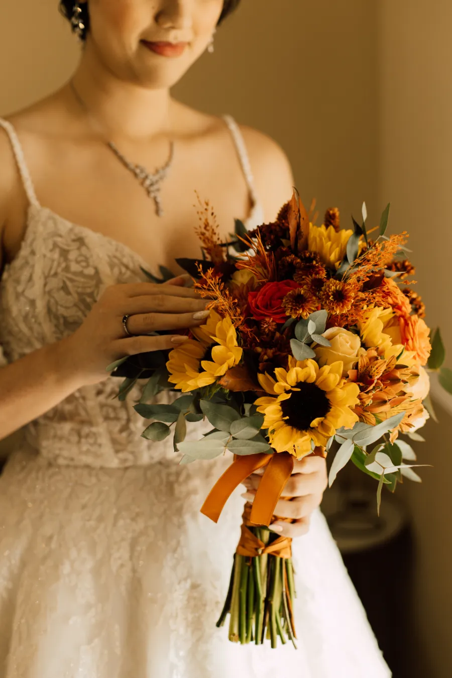 Casamento rústico no feriado inspira com girassóis e tsurus