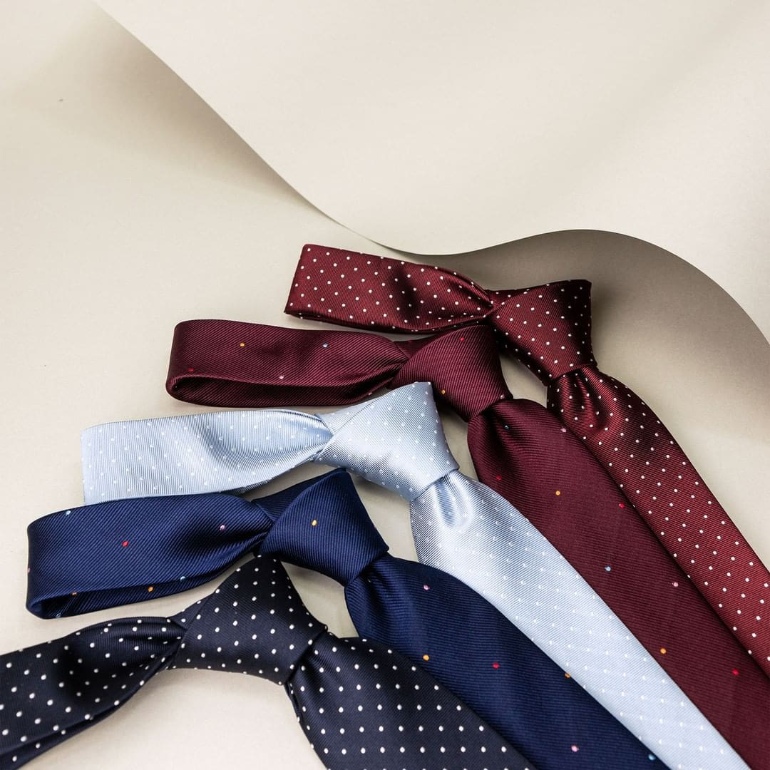 Aqui, o que diferencia o modelo de uma gravata da outra é a ponteira da gravata, que, habitualmente deve seguir o corte do traje, assim como a largura da lapela do paletó: