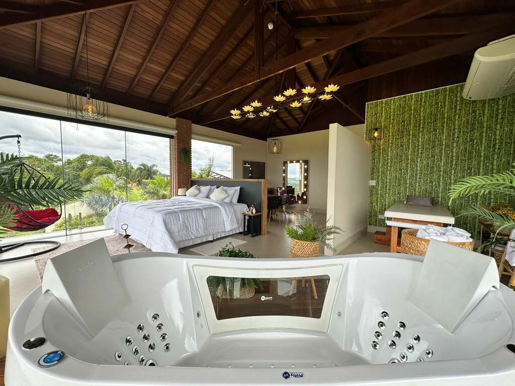O espaço oferece 27 suítes, acomodando até 100 hóspedes. Cada suíte é equipada com ar-condicionado, SmartTV, frigobar e Wi-Fi, incluindo uma romântica suíte nupcial com banheira de hidromassagem.