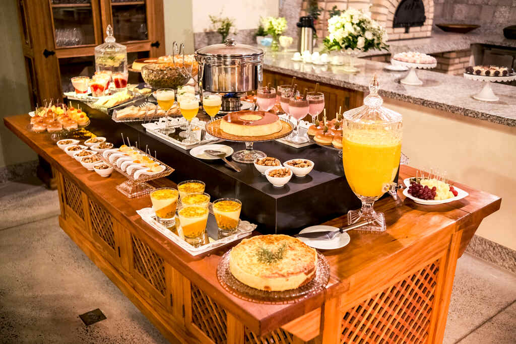 O restaurante é um verdadeiro deleite, durante todo o final de semana, você delícia as refeições escolhidas pelos noivos no Imperium Village, além de ser completo com forno de pizza, churrasqueira, parrilla e um elegante bar para beber drinks.
