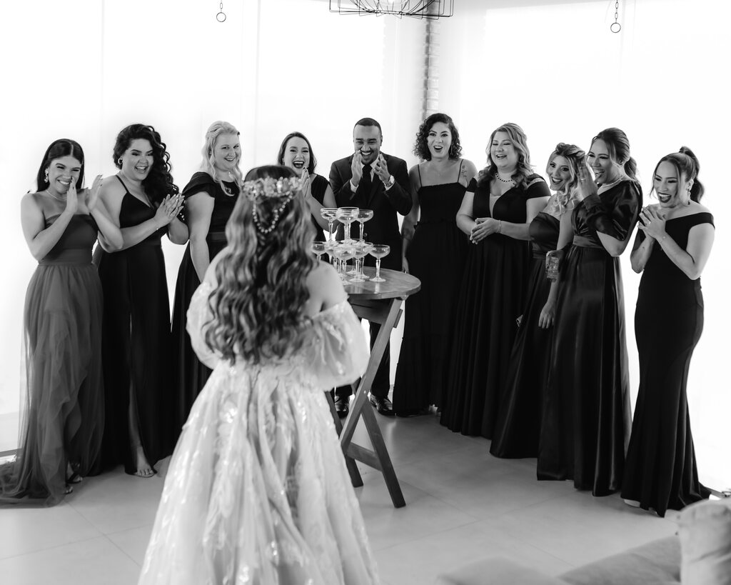 O espaço oferece um salão de beleza completo com área para penteados, maquiagem, fazer as unhas e trocador para pendurar os vestidos. Além disso, tem uma vista para a Capela de Cristal incrível que elas podem acompanhar todo o momento até o casamento.
