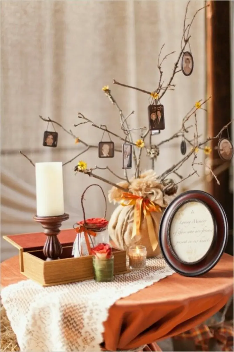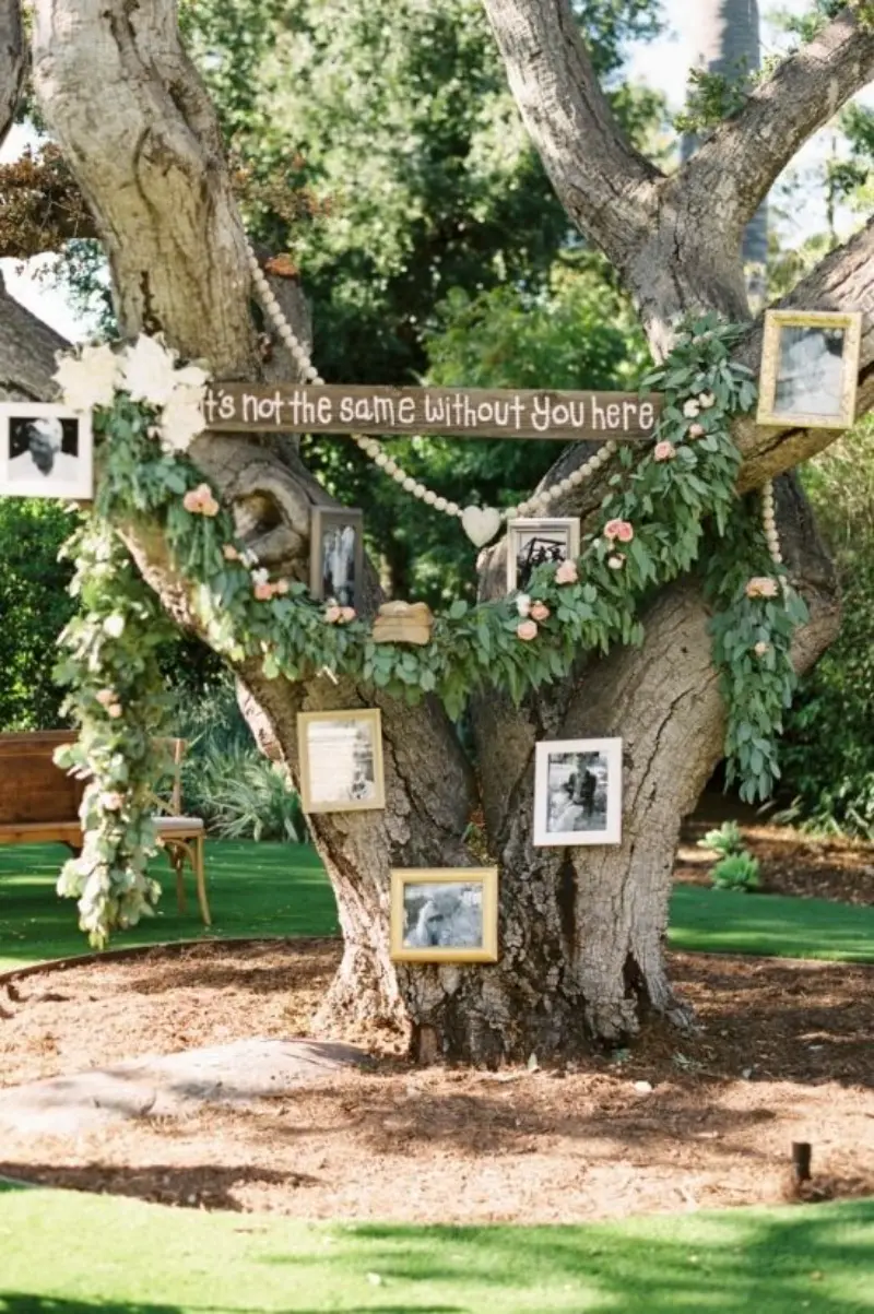 Se a cerimônia de casamento acontecer sob a árvore, que tal colocar as fotos ali? Além de homenagear quem partiu é uma linda maneira de integrar o pai, mãe ou avós que os noivos tanto queriam no dia do casamento.