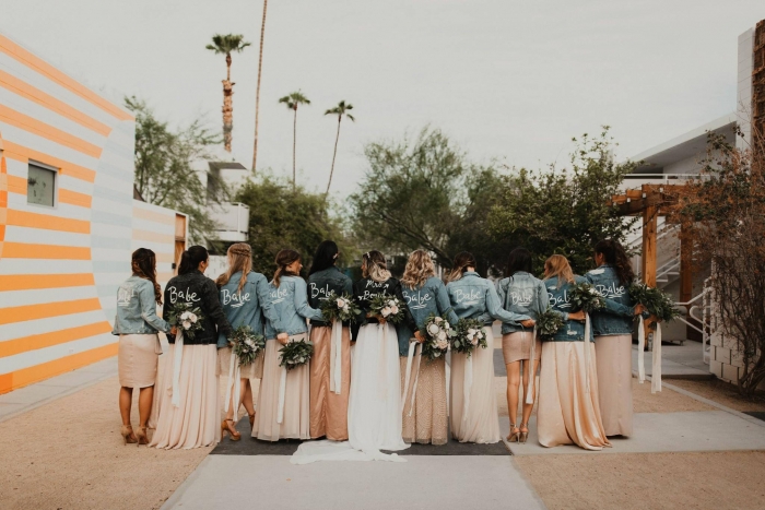 A customização, que pode incluir bordados com frases, nomes ou datas especiais, transforma a jaqueta no dia do casamento em um item único e cheio de personalidade. Então, solte a imaginação e com certeza o resultado será incrível!