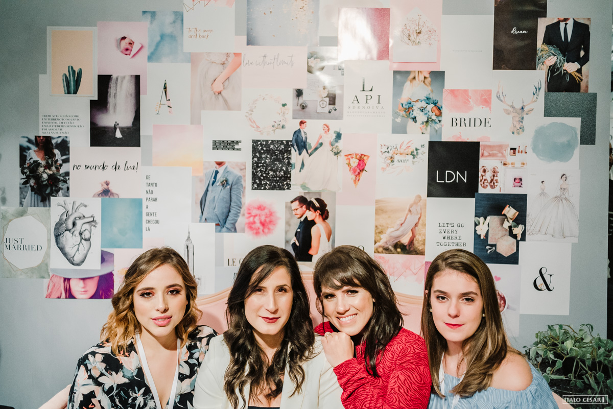 Nas paredes, além da nossa logo confeccionada pela 2wed, nosso lema do ano de 2018: Amor nas Pequenas Coisas, e um board gigante repleto de inspirações que amamos. Sim! A nossa pastinha saiu do Pinterest e invadiu a Home do Lápis. Ficou tããão lindo!