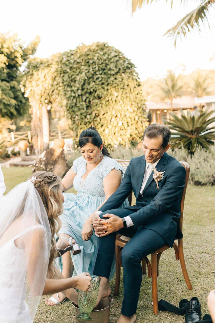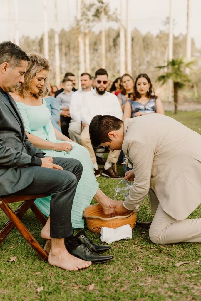 Além de um momento a dois, o casal pode estender o lava-pés no casamento ao seus pais, para expressar gratidão e reconhecimento.