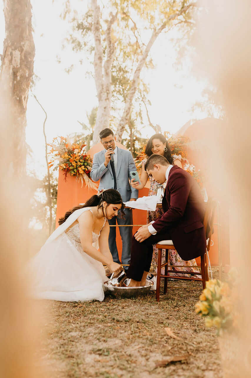 Embora seja um ato simples, o lava-pés no casamento carrega muito significado, e expressa publicamente o respeito e amor mútuos dos noivos.