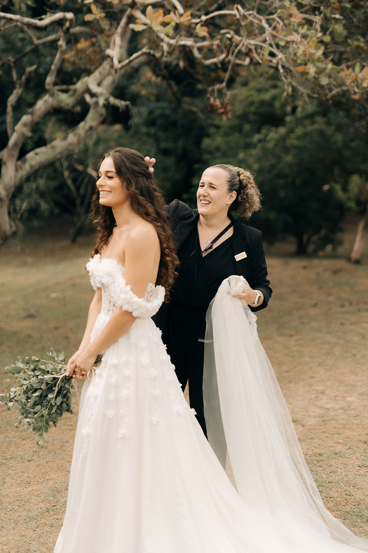 Para deixar tudo ainda mais especial, os noivos, que são de origem cristã, escolheram canções religiosas para embalar o grande dia e elegeram um de seus padrinhos e amigo como celebrante.