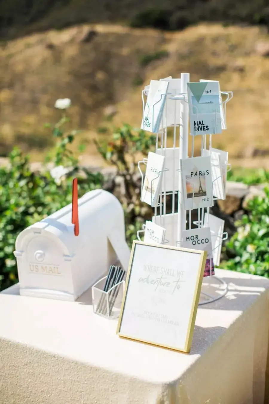 Os noivos viajantes podem trazer sua paixão por conhecer novos lugares no livro de assinaturas. Globos, cartões postais, mapas, existem diversos formatos para enfatizar esse tema.