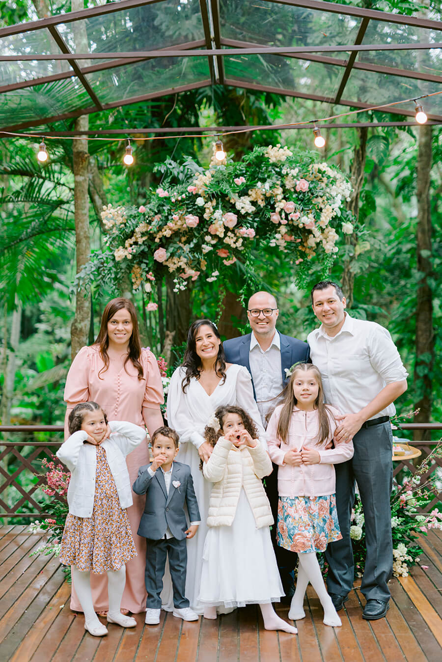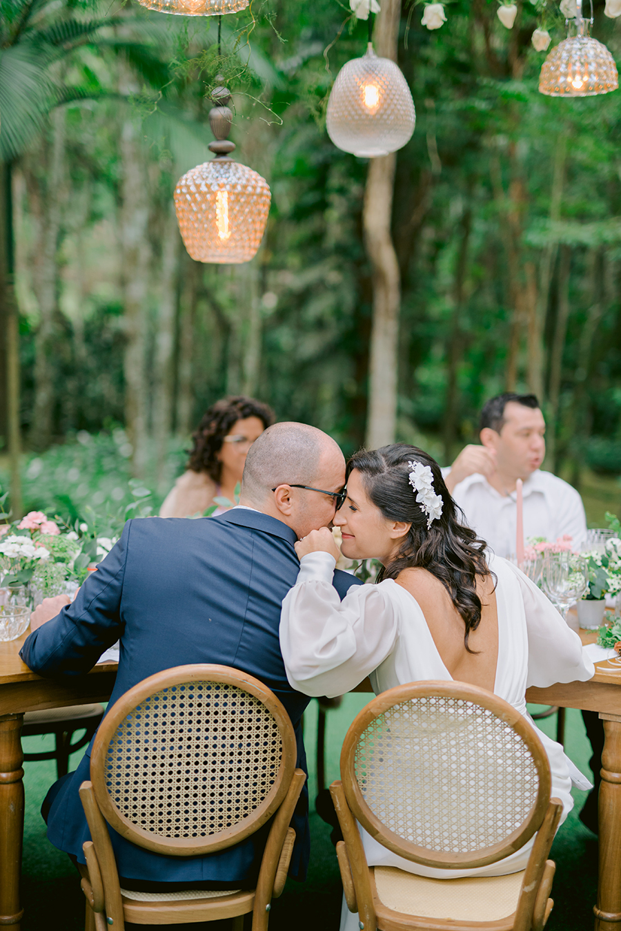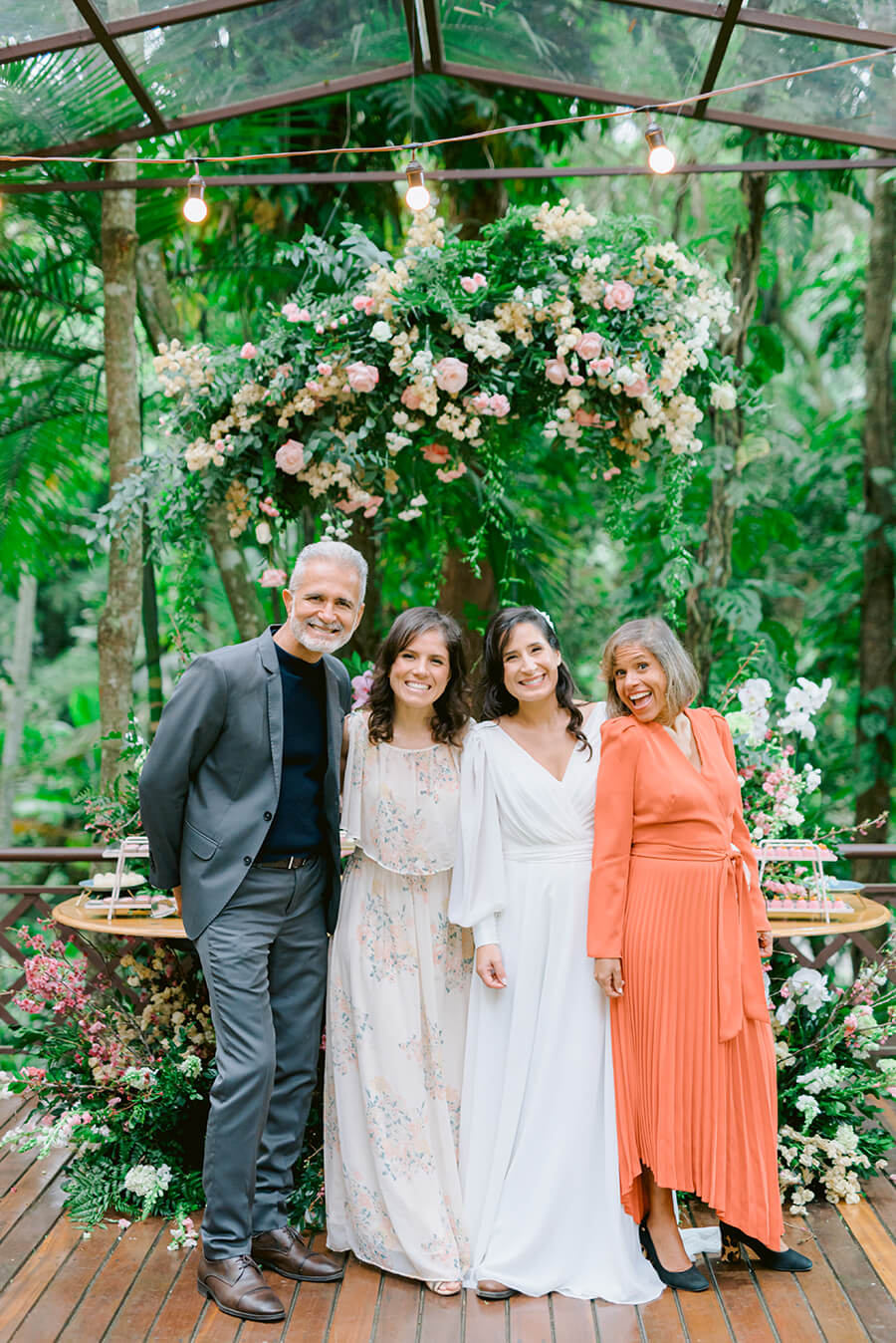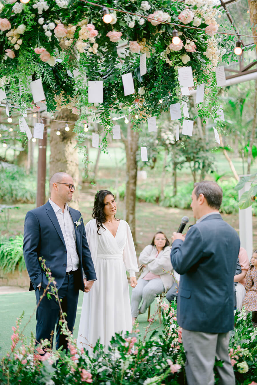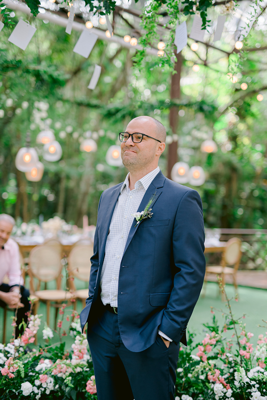 O local escolhido para a renovação de votos não poderia ser outro se não a Casa Giardino, que além de ser rodeada por muita vegetação tem um clima super mágico que parece que abraça a cada visita. Tanto a cerimônia quanto a recepção aconteceram na belíssima capela de vidro do espaço, que é 100% integrada com a natureza, proporciona muita luz natural e ainda cobertura em caso de chuva.