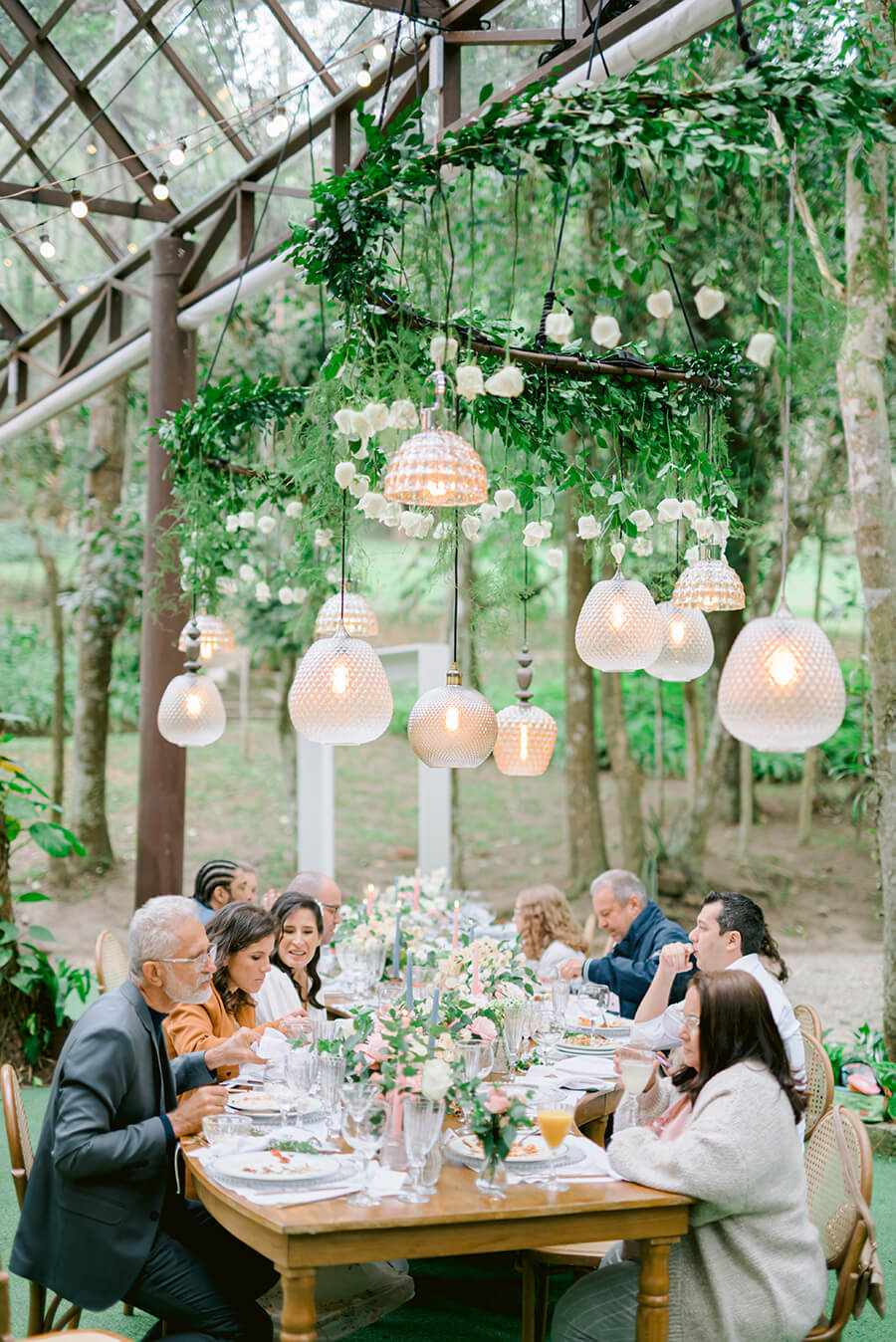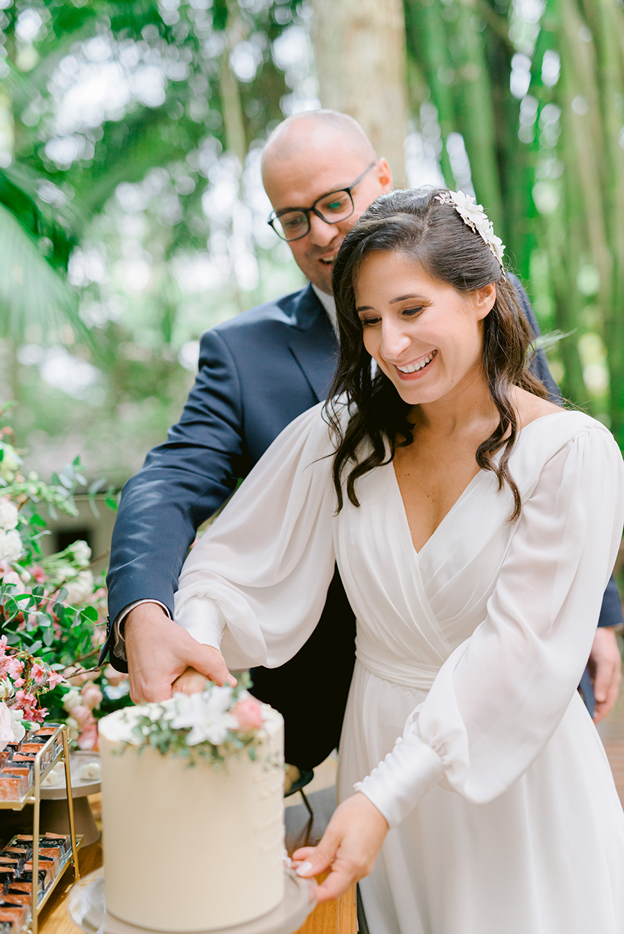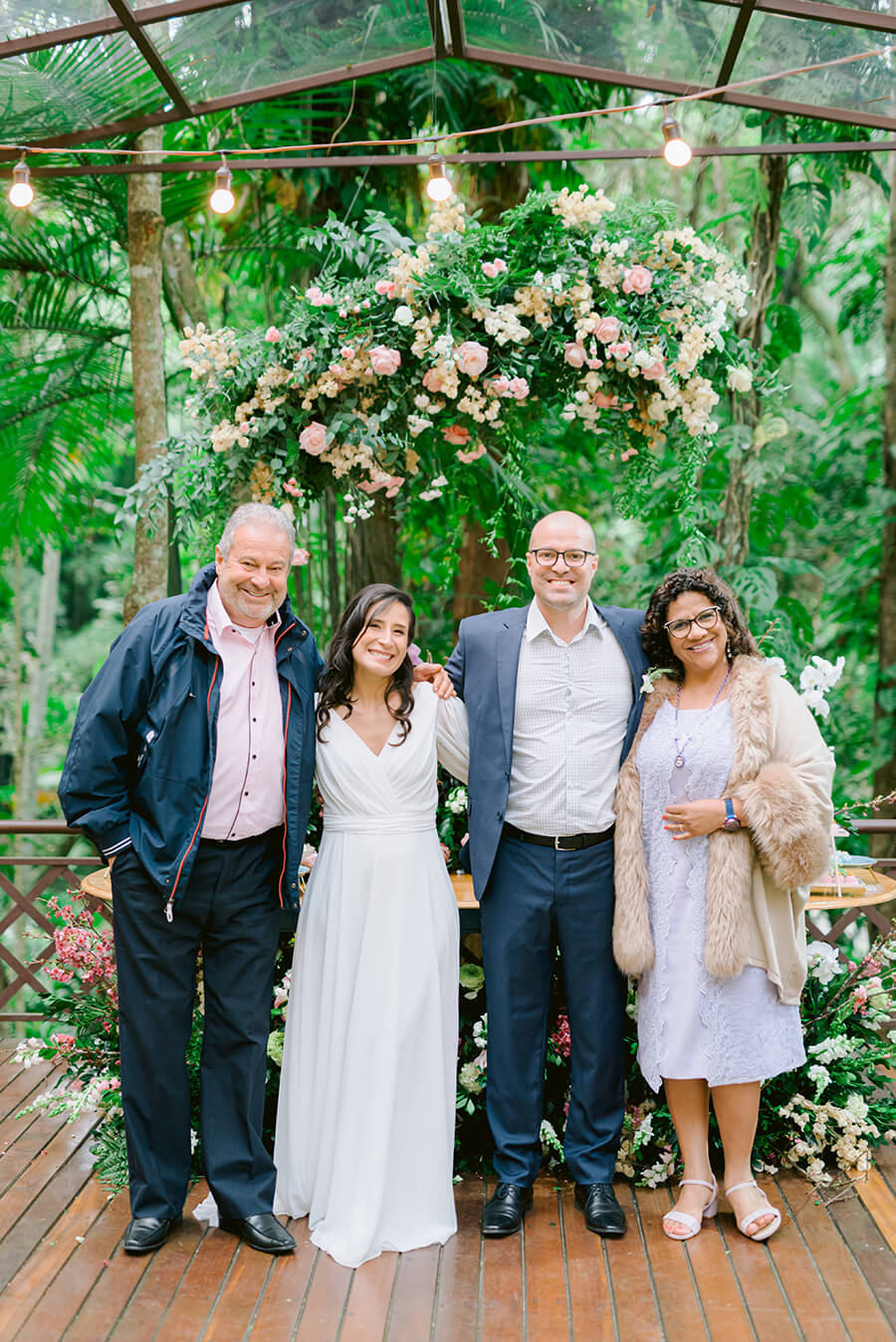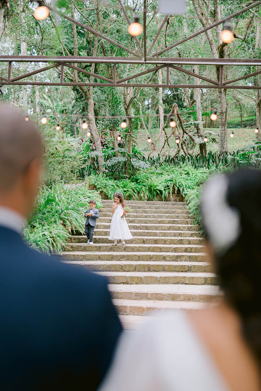 O local escolhido para a renovação de votos não poderia ser outro se não a Casa Giardino, que além de ser rodeada por muita vegetação tem um clima super mágico que parece que abraça a cada visita. Tanto a cerimônia quanto a recepção aconteceram na belíssima capela de vidro do espaço, que é 100% integrada com a natureza, proporciona muita luz natural e ainda cobertura em caso de chuva.