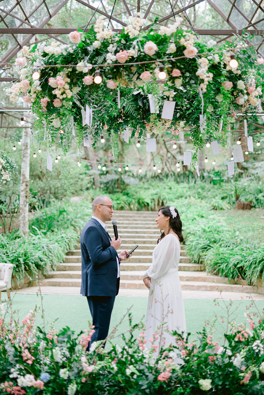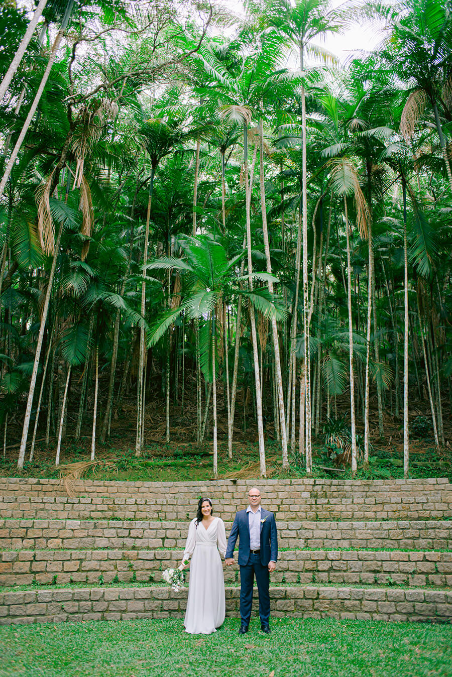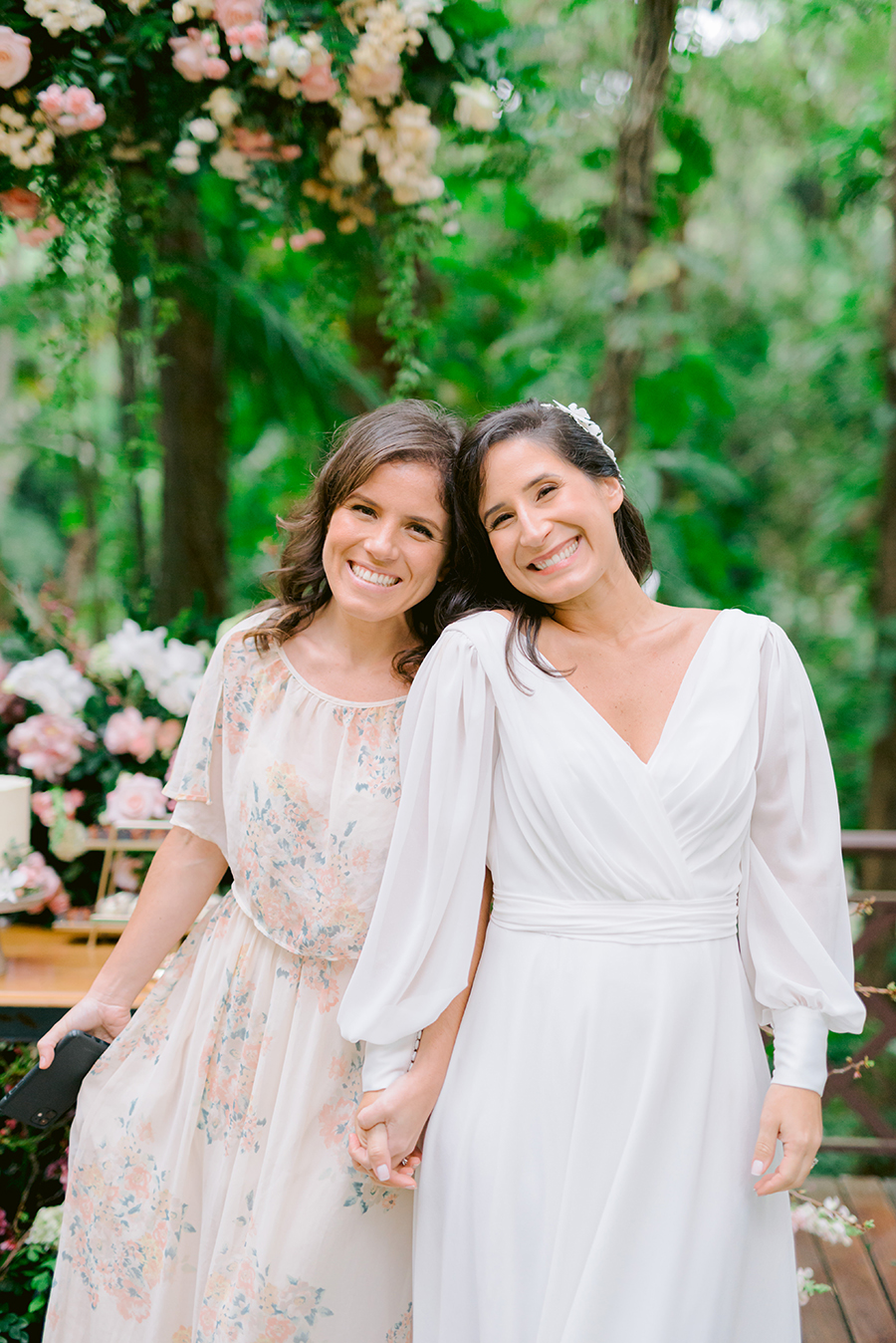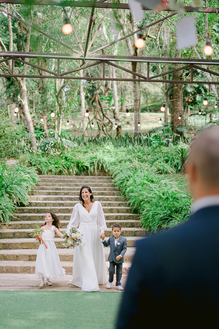 O local escolhido para a renovação de votos não poderia ser outro se não a Casa Giardino, que além de ser rodeada por muita vegetação tem um clima super mágico que parece que abraça a cada visita. Tanto a cerimônia quanto a recepção aconteceram na belíssima capela de vidro do espaço, que é 100% integrada com a natureza, proporciona muita luz natural e ainda cobertura em caso de chuva.