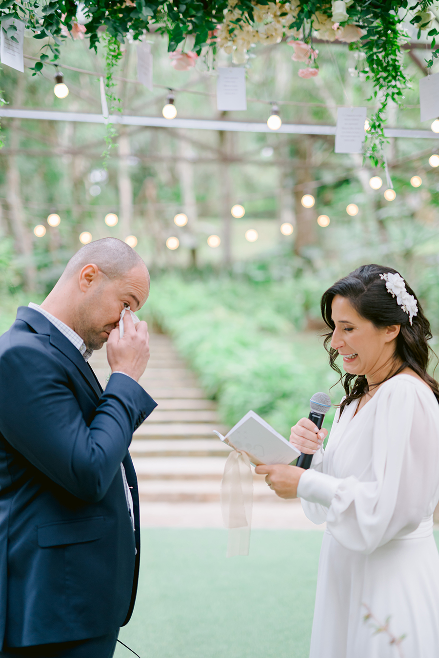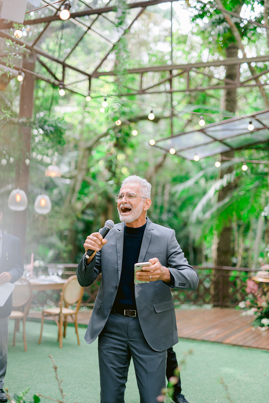 Um dos momentos mais aguardados da cerimônia era ver o pai da Lorena cantando novamente a emocionante música que ele compôs e cantou em seu casamento, lá em 2012 (clica aqui pra ver o vídeo). Mas o que ninguém esperava era que ele faria uma nova versão da música, com uma letra adaptada para a momento atual da família; até o Diego ganhou um verso e todo mundo, claro, se emocionou demais com a surpresa.