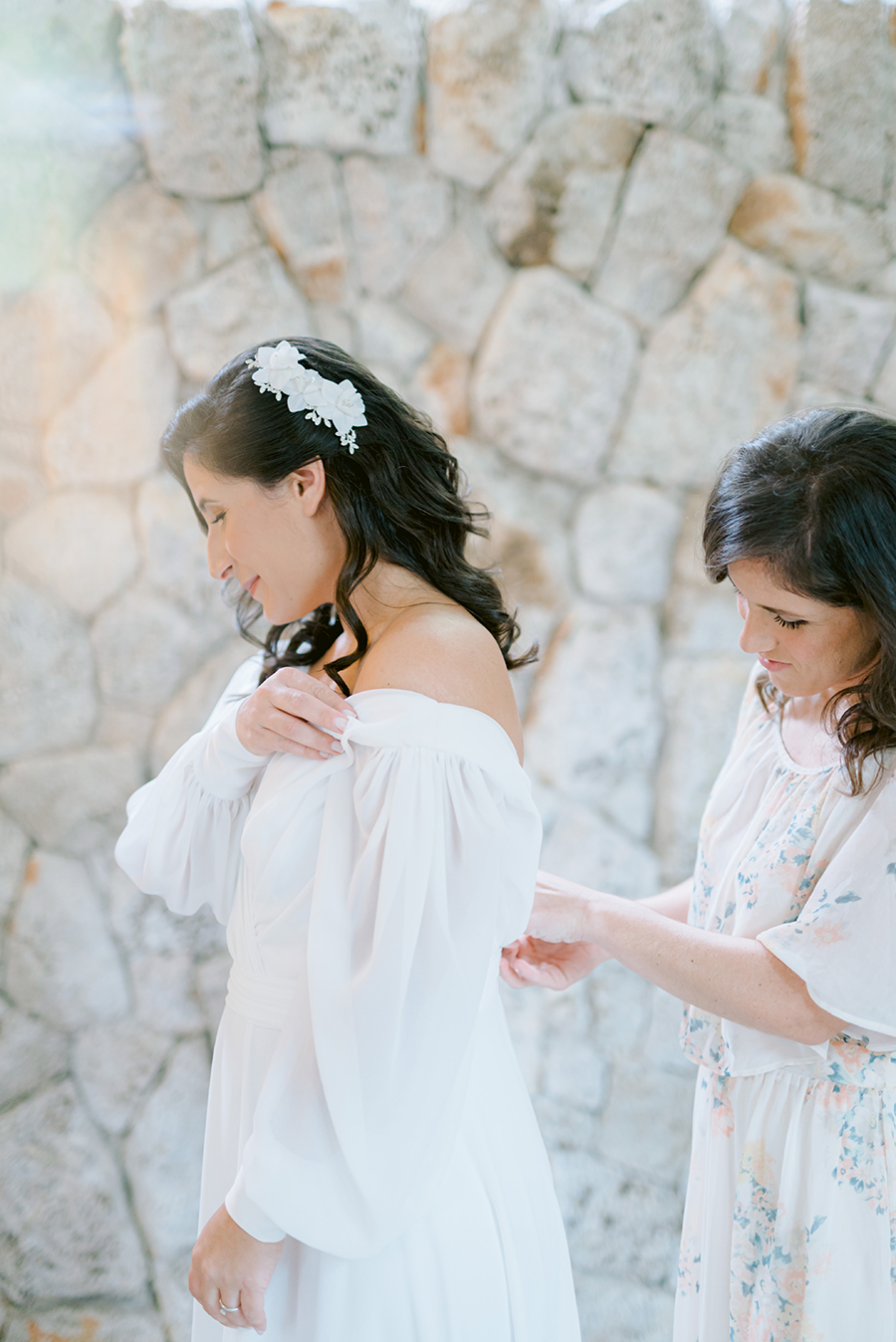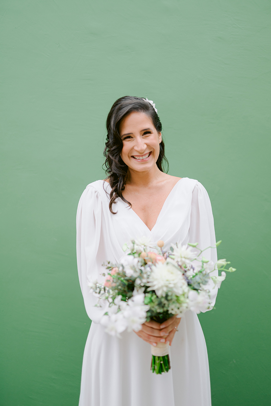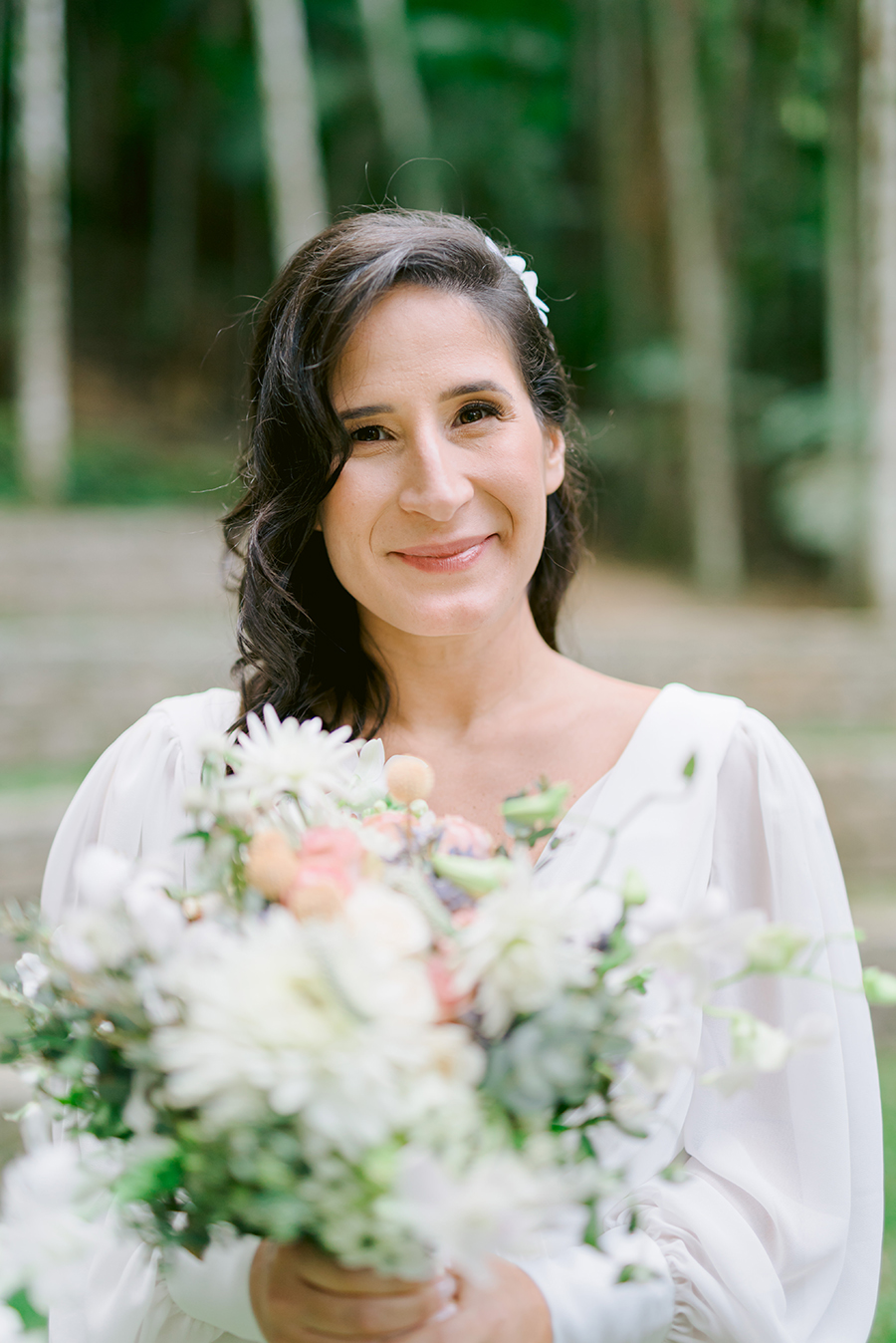 A beleza assinada pela Sandra Costa Make Up foi leve, natural e trouxe uma pele perfeita! No cabelo, penteado solto, preso somente na lateral com pente florido da Nat co. Bride.