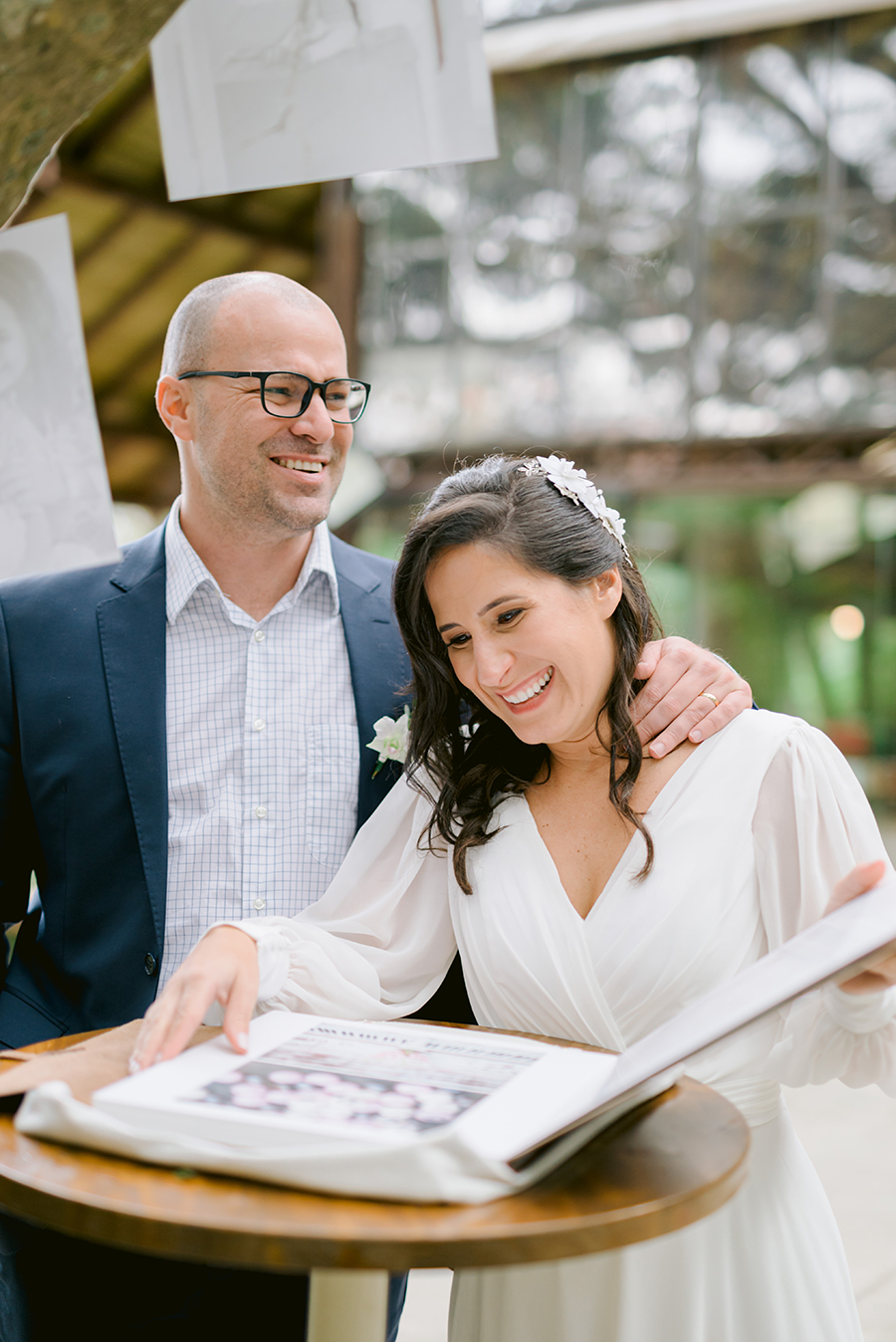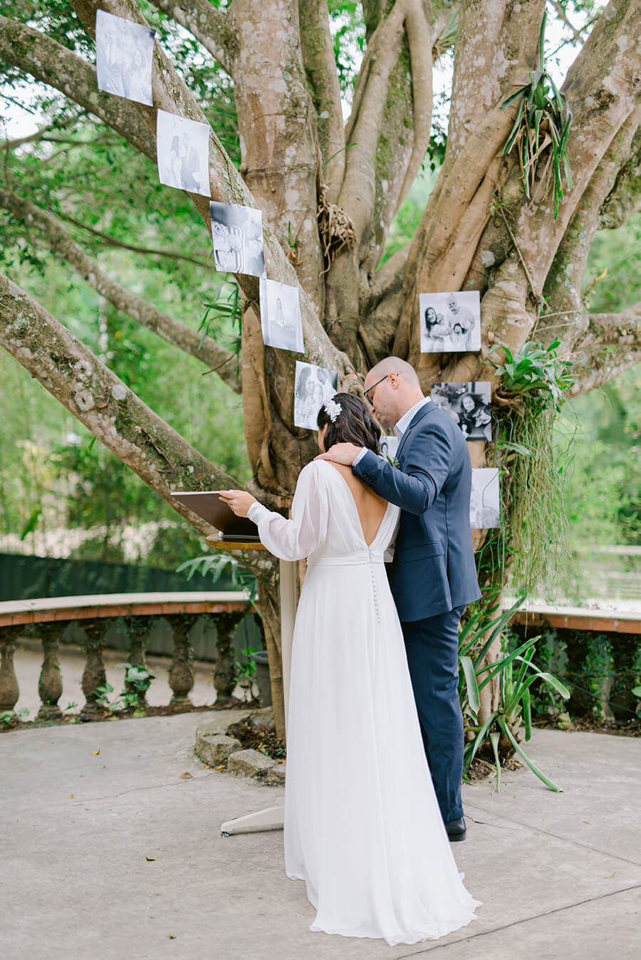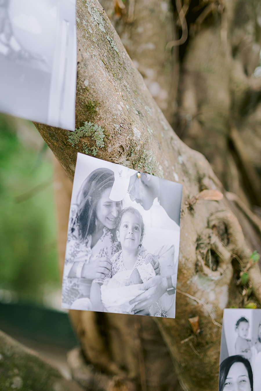 Que momento único foi folhear e relembrar do dia do sim sob a árvore que continha fotos penduradas de acontecimentos chaves na vida do casal, uma foto para cada ano vivido lado a lado.