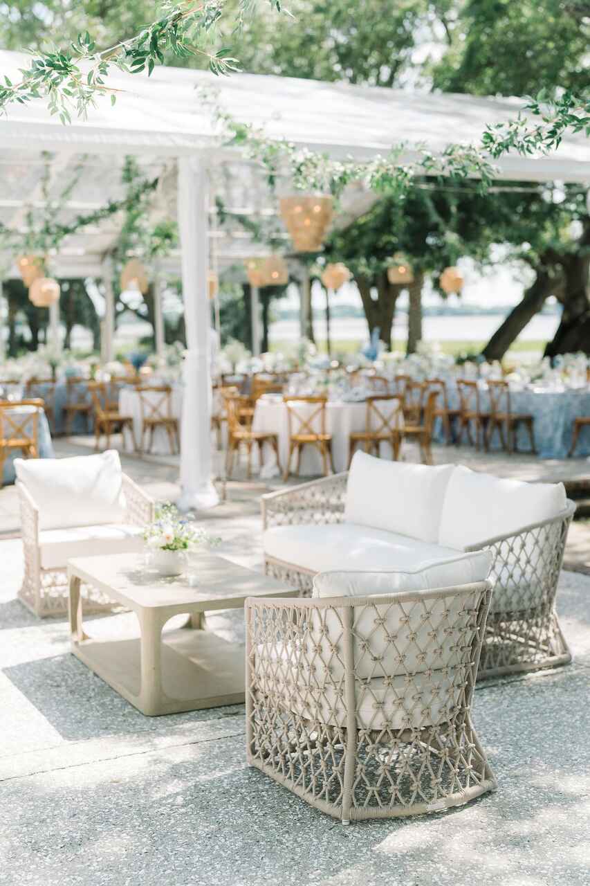 Se o casamento tem um tema rústico-chique, por exemplo, o lounge pode incluir móveis de madeira de demolição, mantas de tricô e arranjos de flores do campo. Já para um casamento contemporâneo, sofás de linhas retas, peças de design minimalista, luminárias modernas e até letreiros em neon dão o tom desejado.