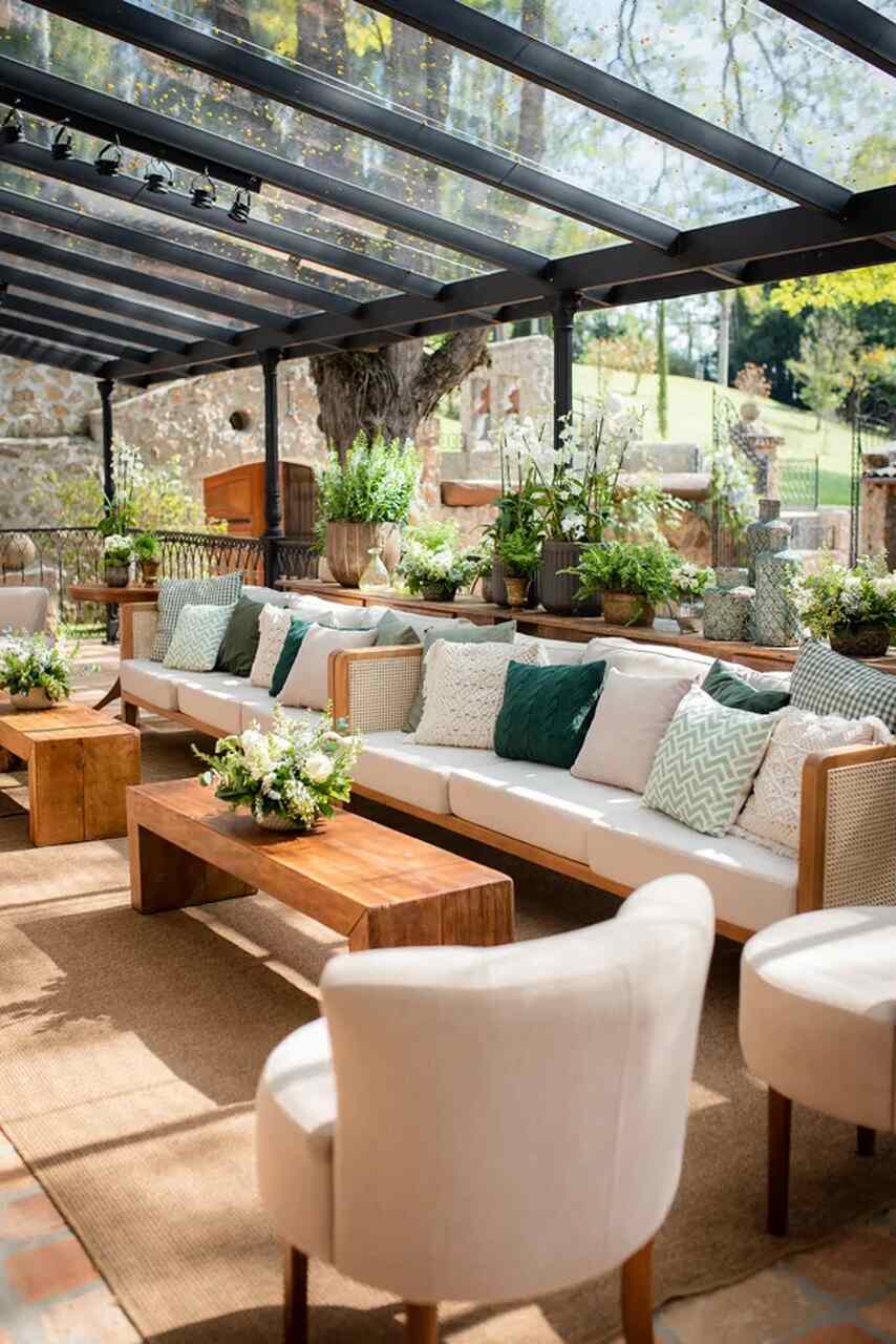 A versatilidade do lounge permite que ele seja adaptado a qualquer tema ou estilo de casamento.