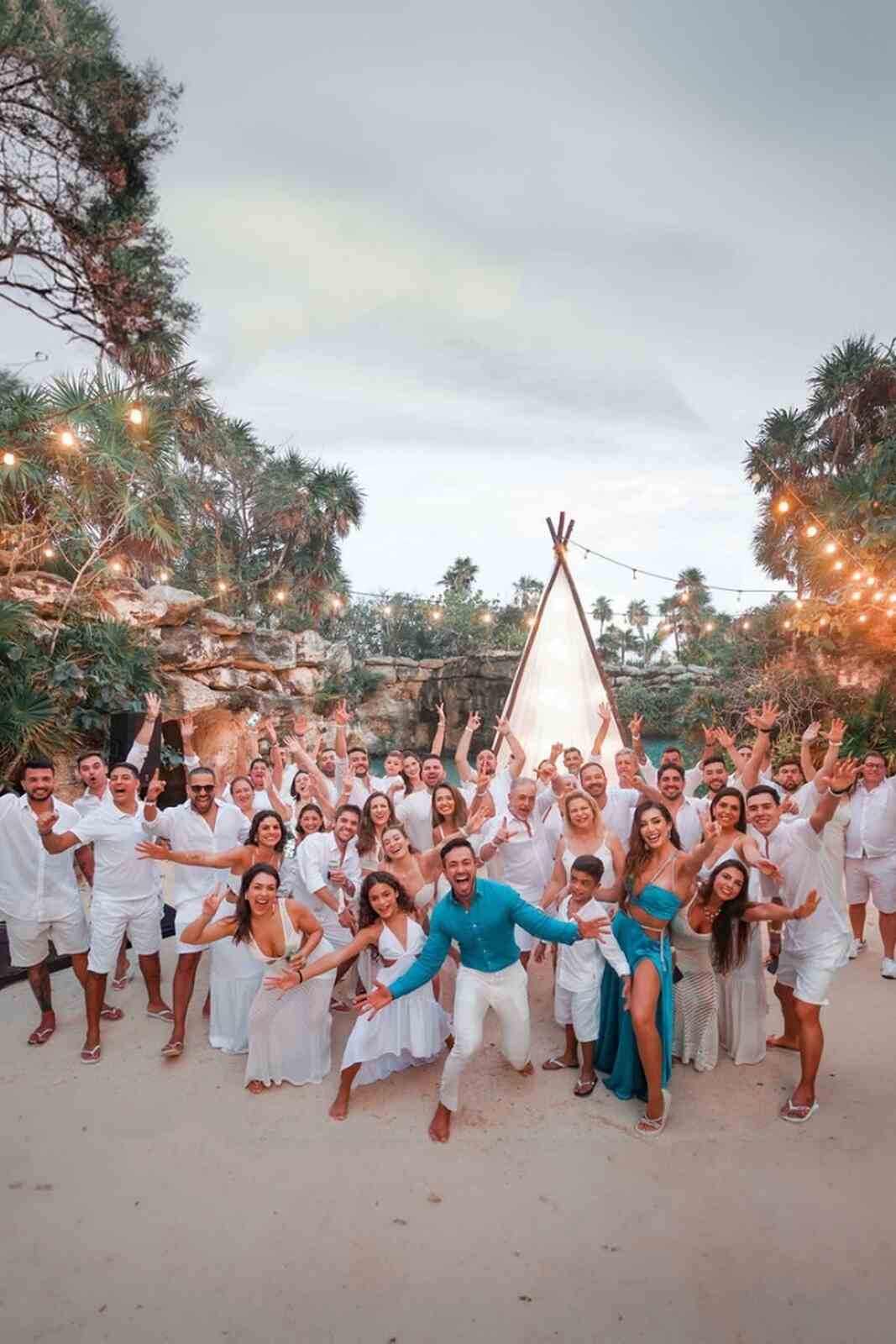 “Nos casamos em Cancún, 5 dias de festa com quase 50 pessoas, um sonho que é IMPOSSÍVEL de descrever! Me emociona só de lembrar, ver nossos amigos e família que atravessaram o país pra celebrar nosso amor. Todos passaram por cima de algum problema para estarem com a gente.“