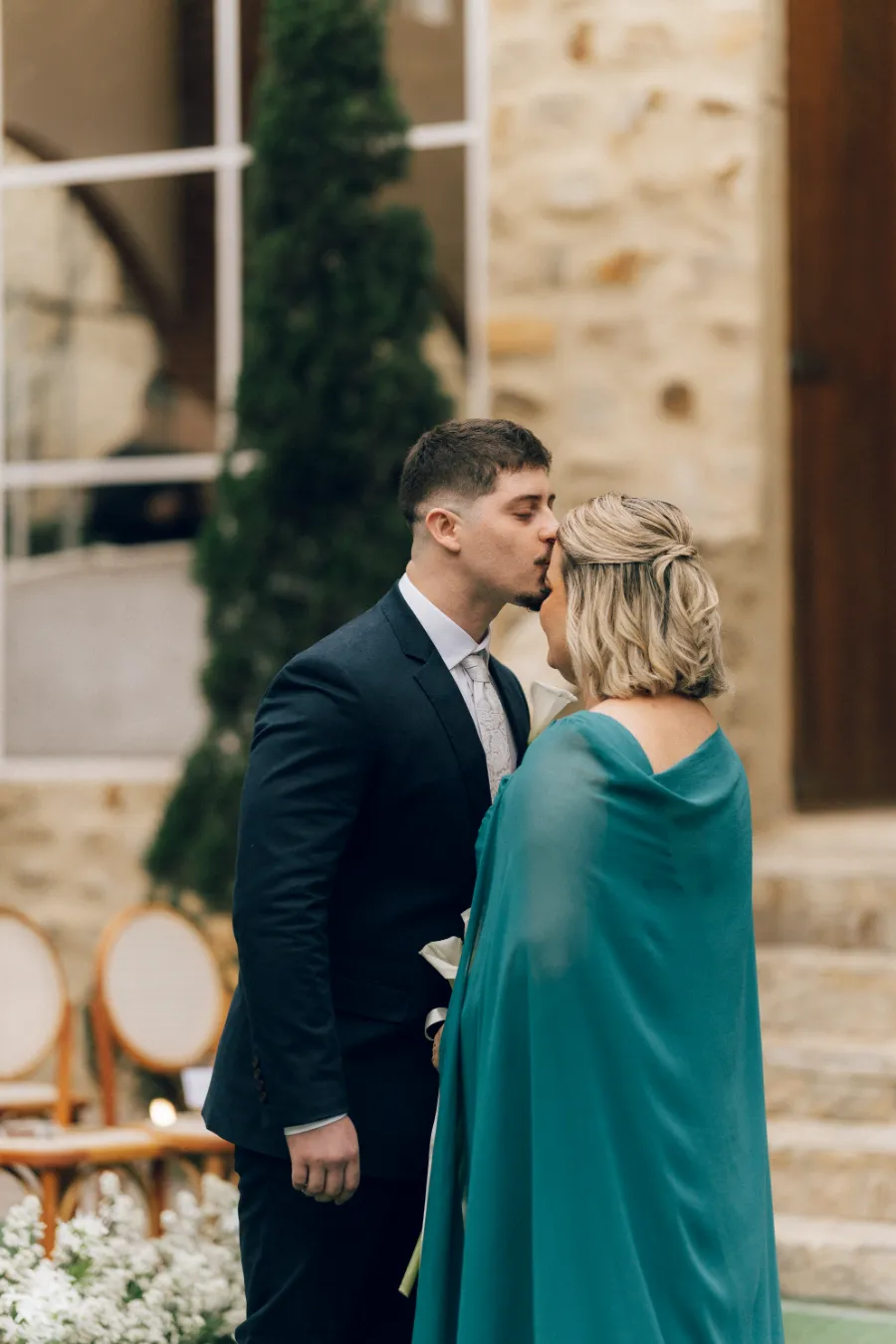 Os noivos apostaram em um estilo que une o clássico verde e branco com uma pegada de casamento italiano. Ou seja, com mesas imperiais.