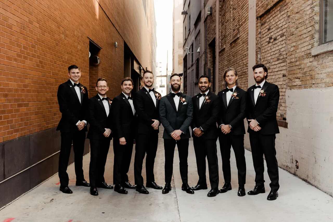 Voltar para o índicePara equilibrar o visual e garantir harmonia nas fotos, o traje dos padrinhos de casamento também merece atenção e deve ser cuidadosamente escolhido. Uma opção clássica e atemporal é o terno preto com camisa branca, combinado com gravata ou gravata-borboleta, perfeito para casamentos formais ou com dress code black tie.