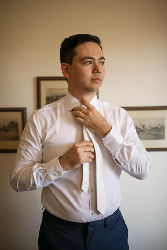 A cerimônia religiosa foi linda. No dia anterior ao casamento, à noite, os dois se casaram oficialmente perante a igreja, já com efeito civil. Foi uma cerimônia pequena, muito íntima e celebrada por um padre que a família do Rafael conhece e é amiga há muitos anos.