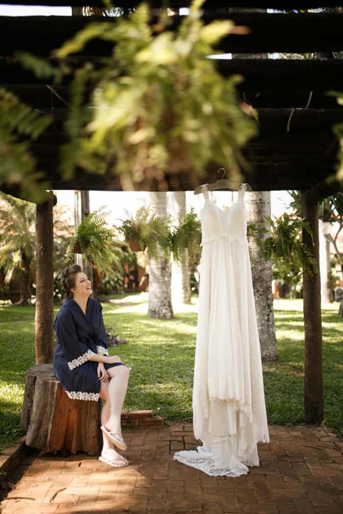 O maior sonho da Mariana sempre foi casar ao ar livre. As famílias chegaram na sexta e ficaram todos hospedados na casa da família que existe lá. Durante o dia, todo mundo estava lá. Alguns na piscina em frente a sala onde as madrinhas se arrumavam, outros no quiosque fazendo da noiva para dar amor ou algum drink.
