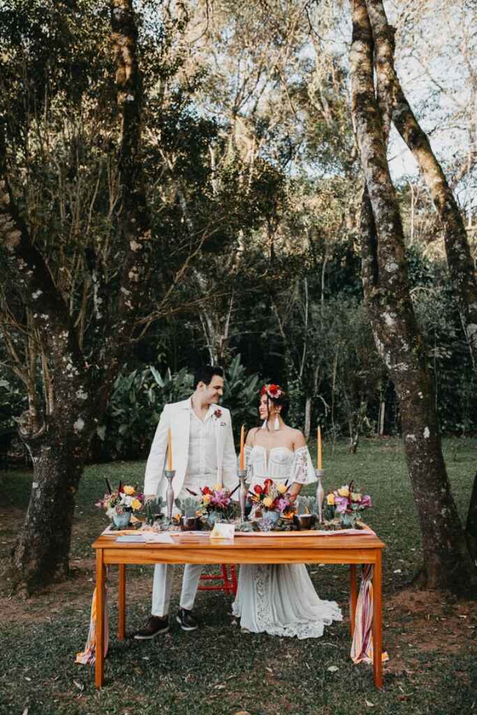 Mesa dos noivos colorida
