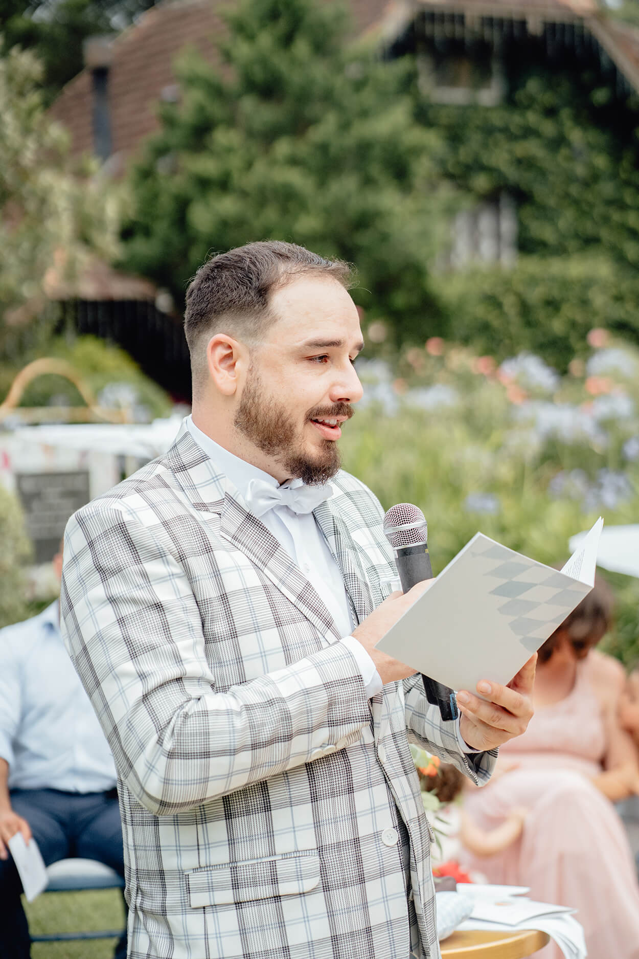 A cerimônia foi conduzida pela mãe da Nicole, que foi tocante e surpreendente. Ela interpretou um texto escrito pela celebrante Sarah Coelho, uma grande profissional e amiga da noiva. A celebrante também teve uma missão bem especial!