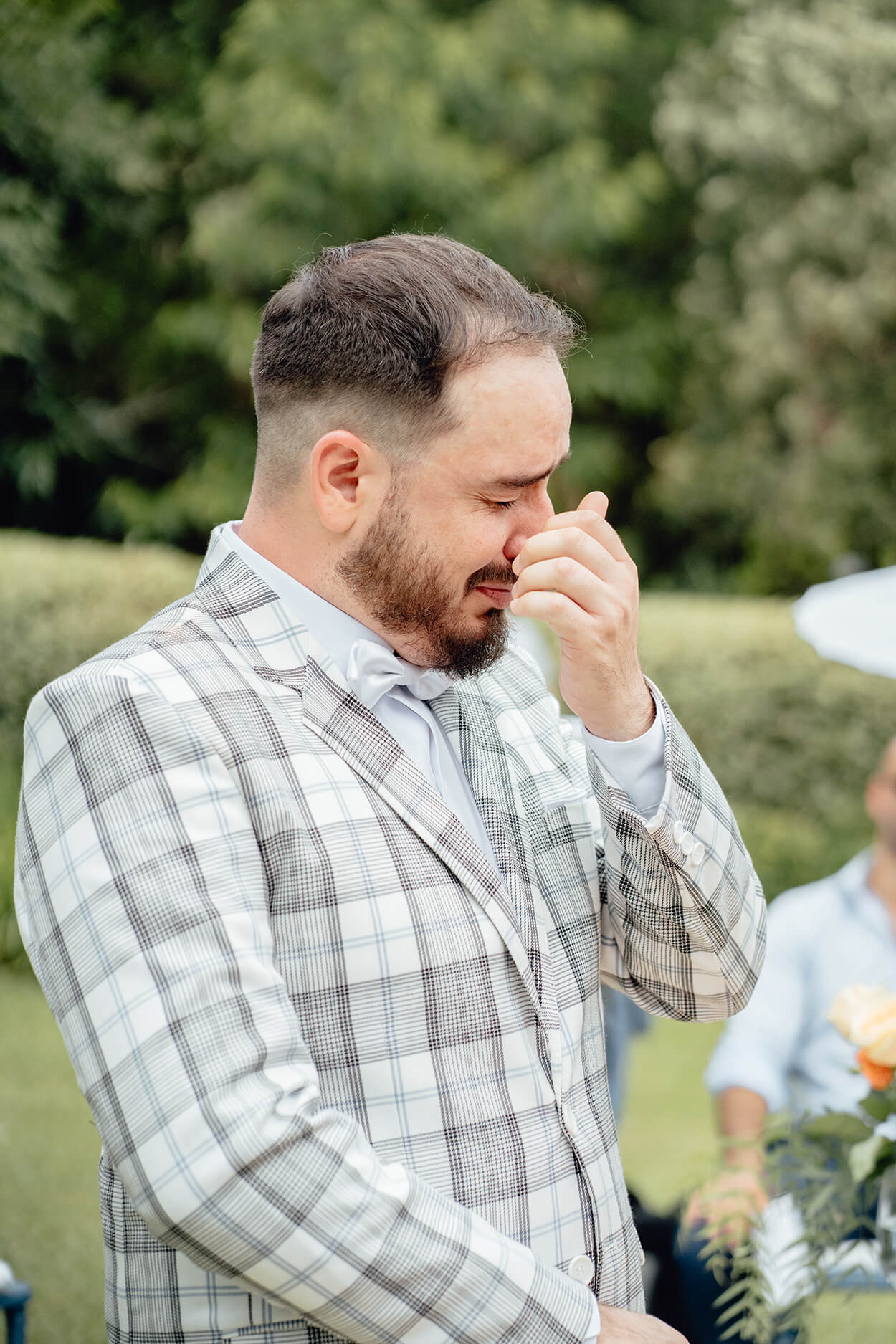 Entre eles foi a entrada da noiva com a sua mãe, ao som de um tango, que foi escolhido para homenagear os avós argentinos. “Ali, para mim, caiu a ficha de que o casamento estava acontecendo. O Vinícius ficou super emocionado ao me ver (e em choque com o meu look).