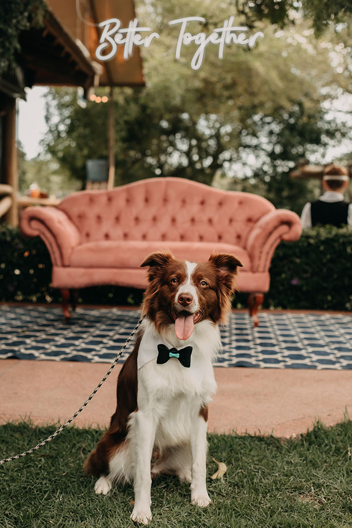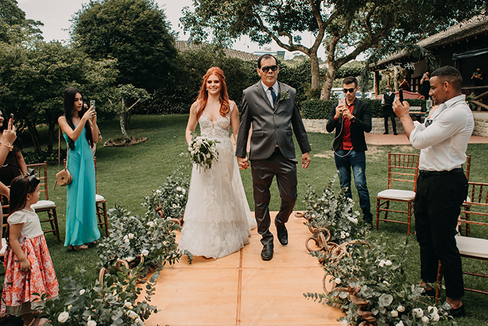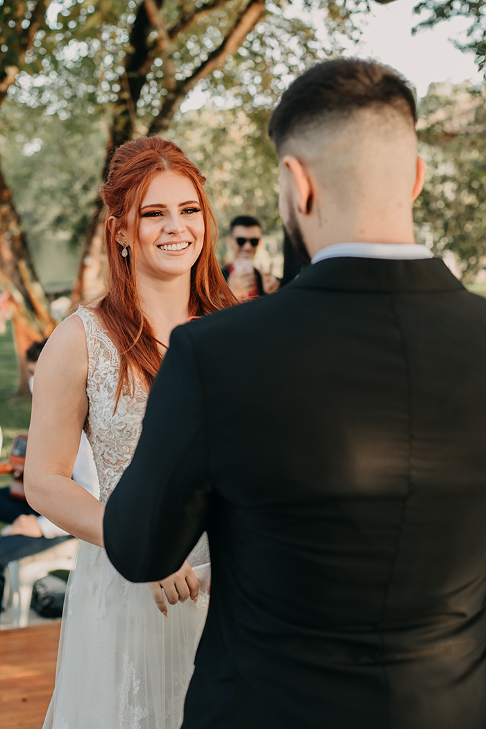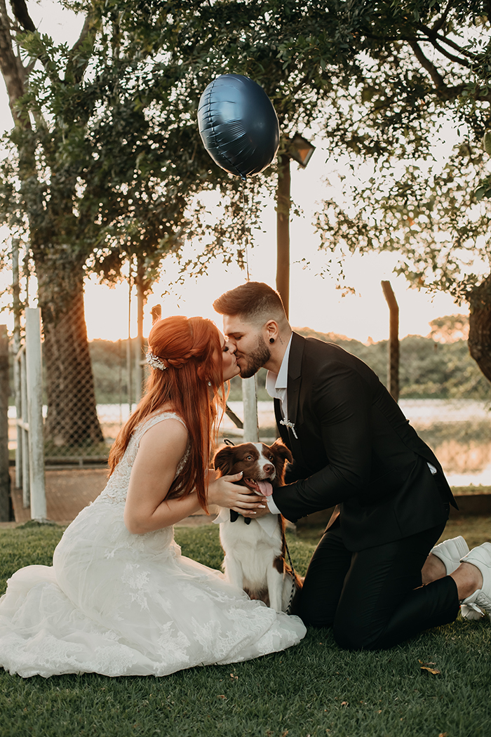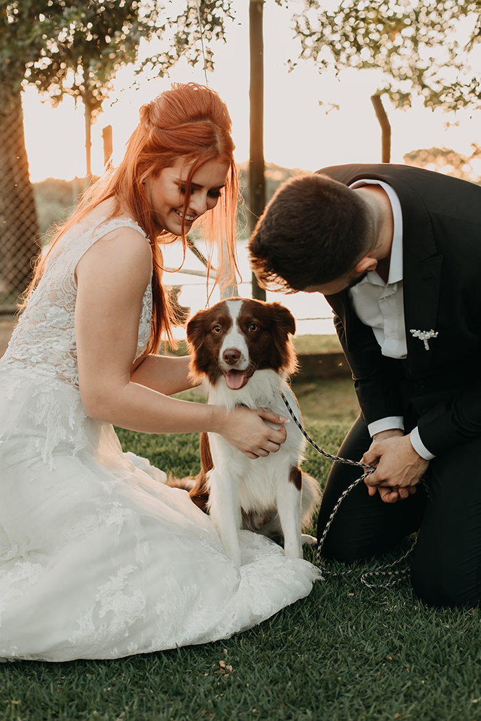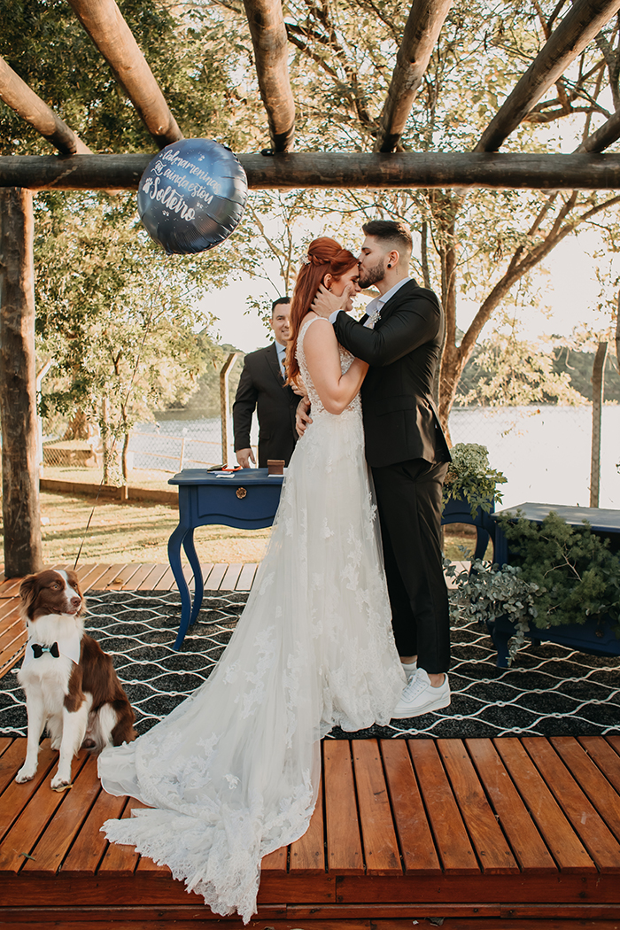 Mesmo com o número de convidados reduzido, o grande dia da Rita e do Robson foi emocionante com a entrada da avó da noiva com as alianças e a entrada do filhinho de quatro patas do casal.