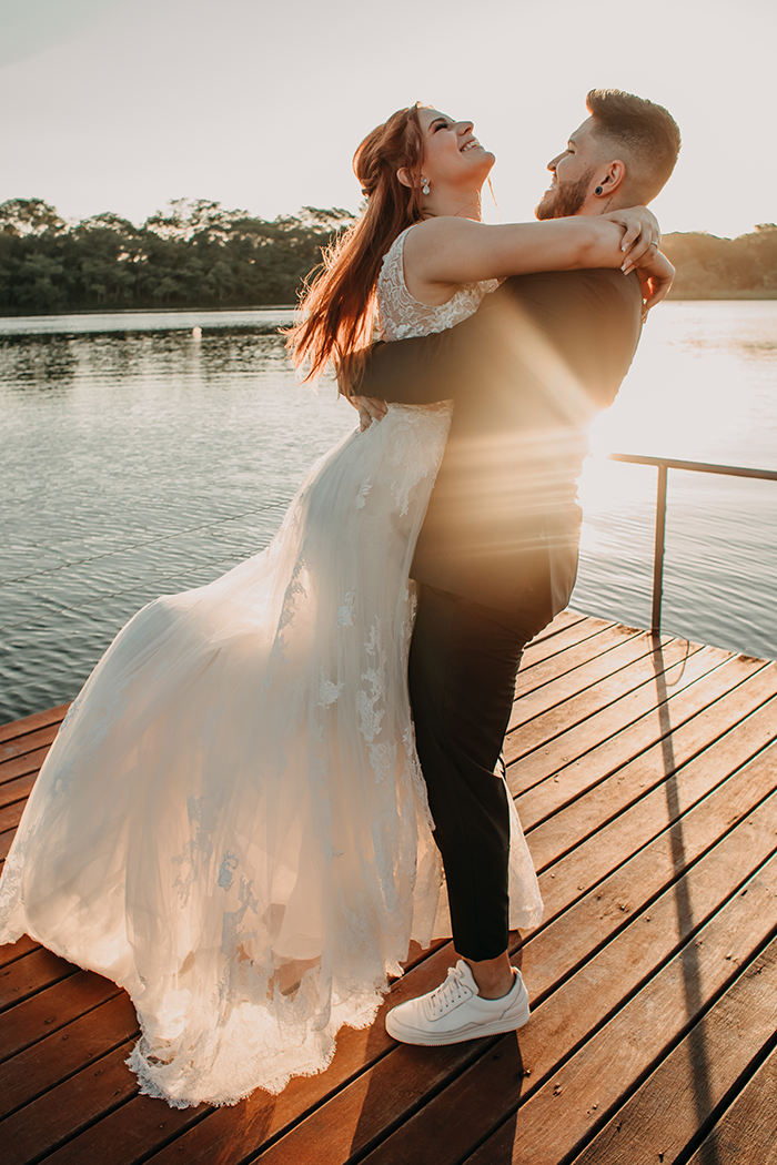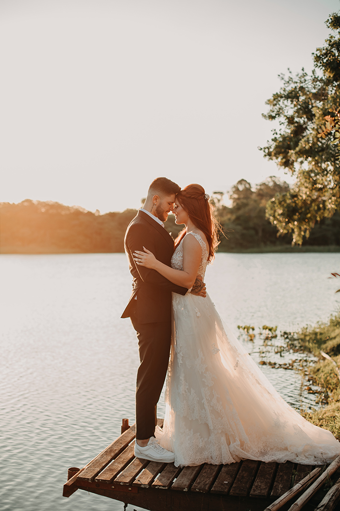 “Fizemos as fotos em Campos do Jordão e já voltamos no carro nos beijando. Depois disso não nos desgrudamos mais, fomos morar juntos com quatro meses de namoro e realizamos o grande sonho de casar”.