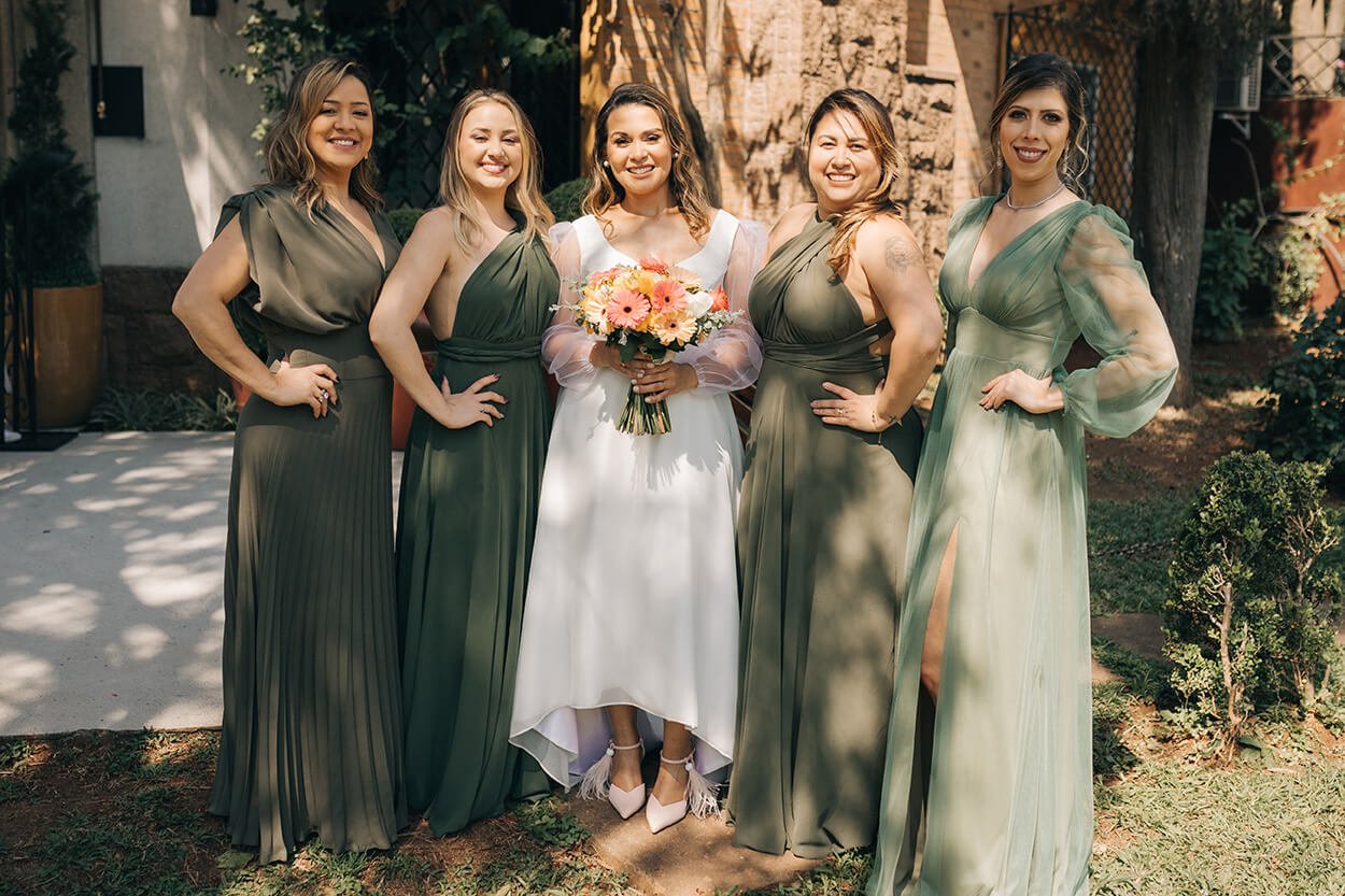 Precisamos admitir. Os vestidos verdes para madrinhas com certeza estão no nosso top 3 cores favoritas! Provando, mais uma vez, que a paleta verde e branca é o novo clássico no mundo dos casamentos.