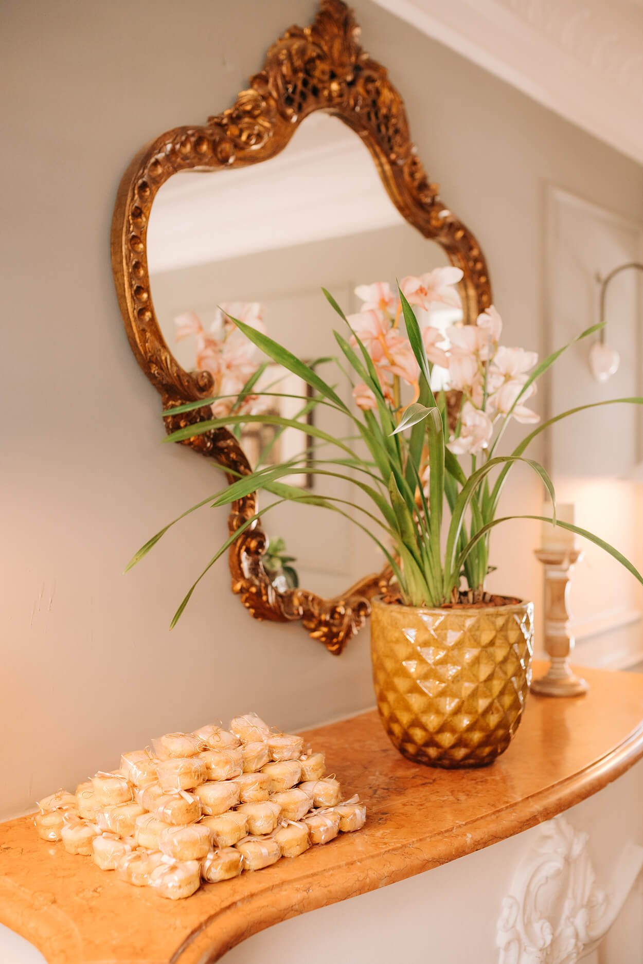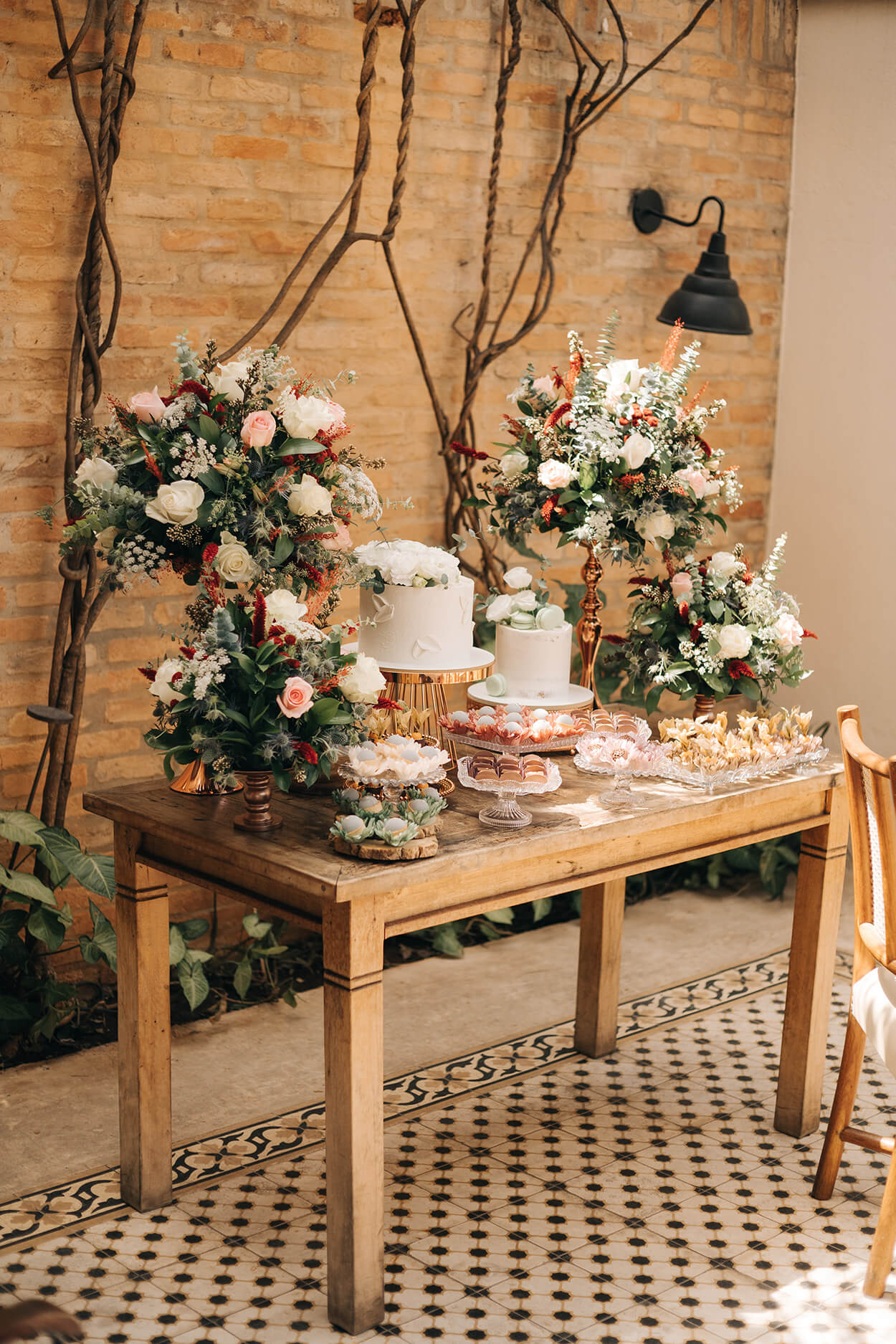 Podemos notar que a decoração carrega algo intimista e acolhedor, afinal, foi planejada para receber 60 convidados. Por toda parte tem elementos que remetem ao estilo rústico chic, enquanto também explora a estética romântica.