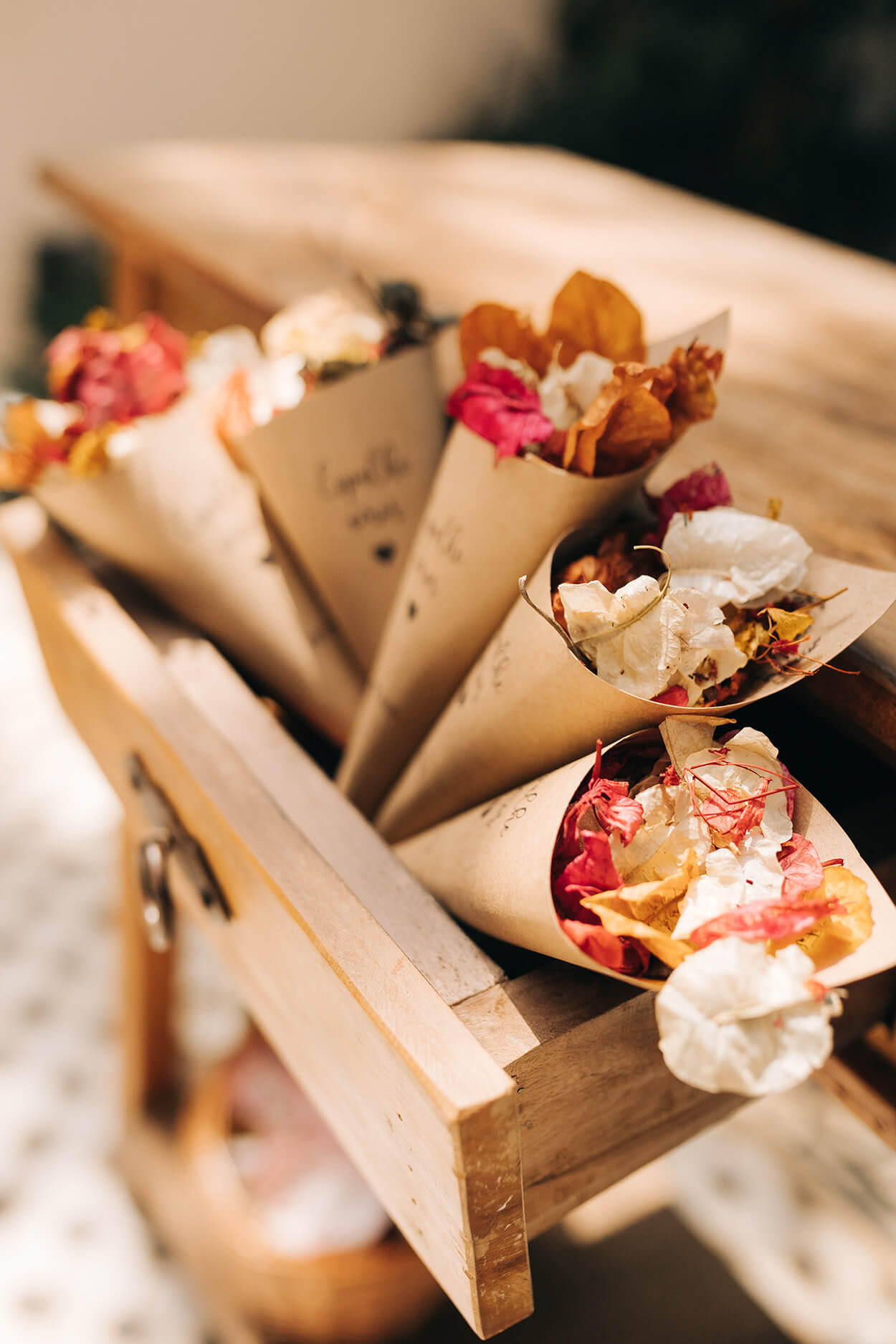 saída dos noivos enquanto convidados jogam pétalas de flores