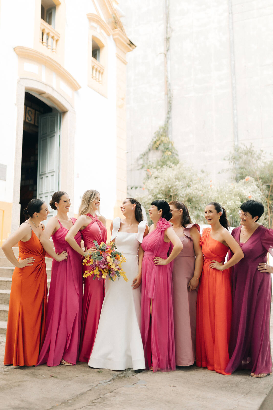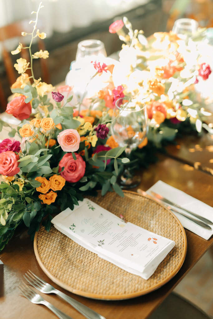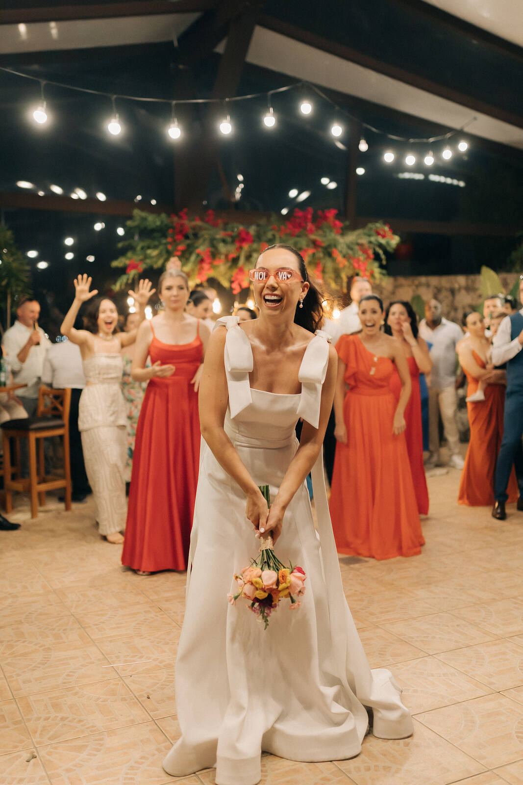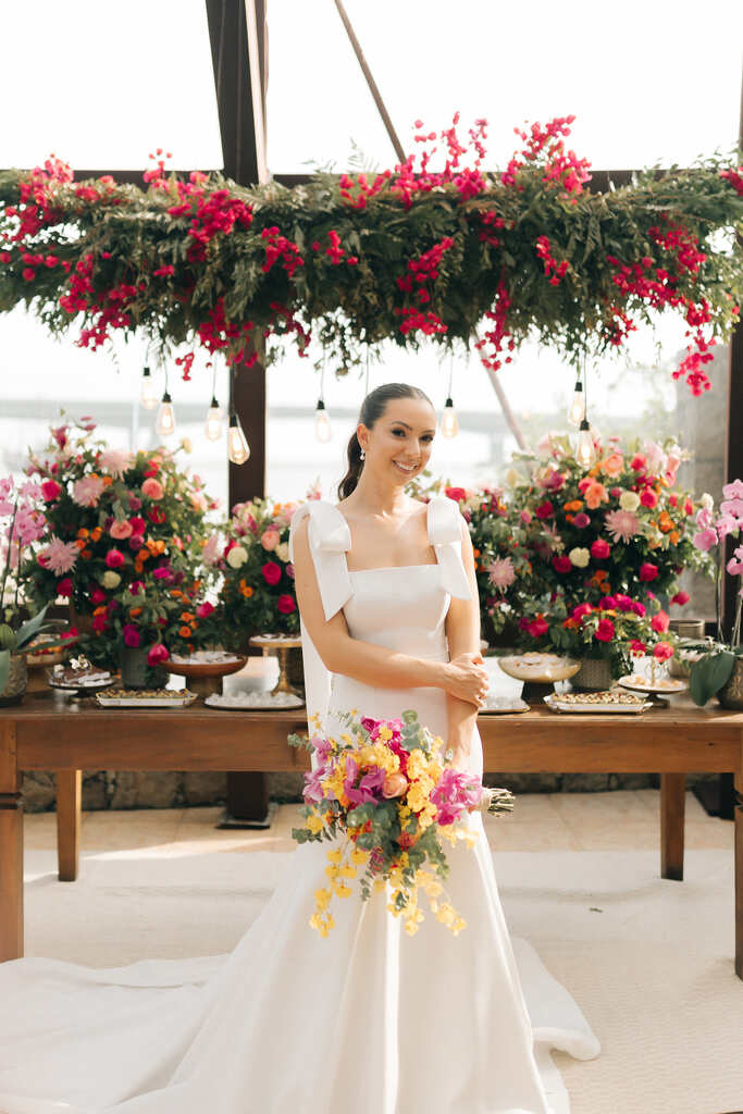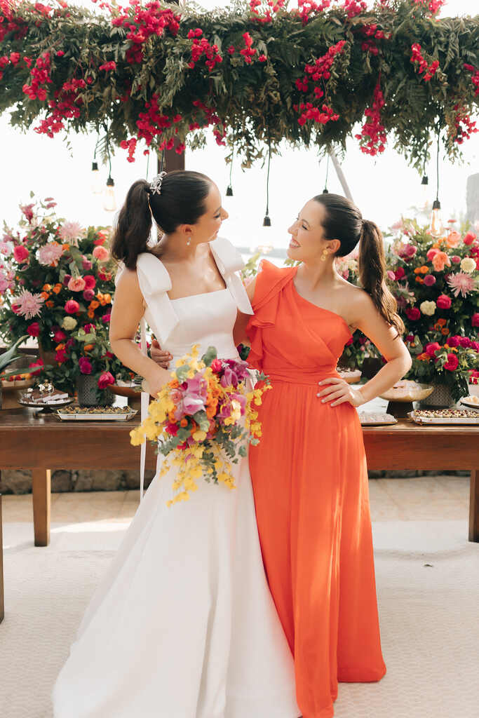 Dando bastante ênfase ao rosa e laranja, que, aliás, também foram usados pra destacar as madrinhas.